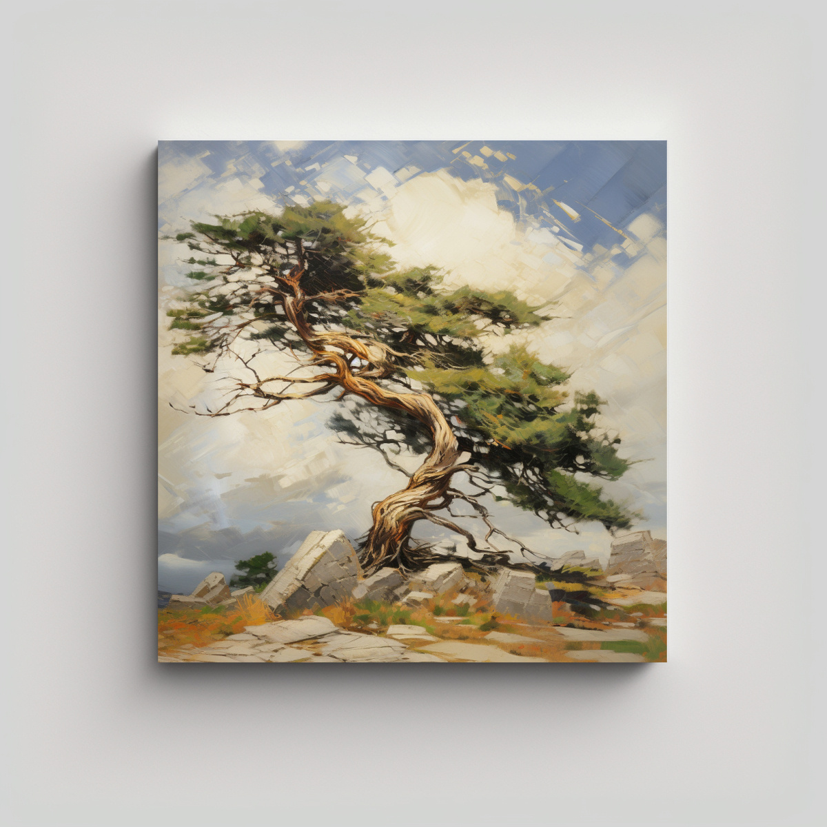 Tela En Bastidor Imagen Salón Pintura De Un Pino Escocés Abstracto Estilo óleo Con Alta Precisión