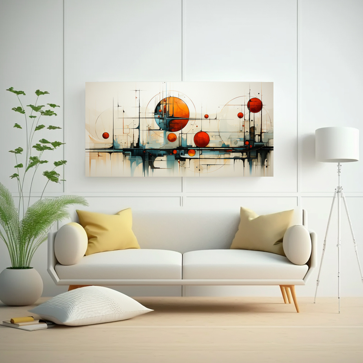 Este cuadro sería perfecto para decorar la sala de estar, creando un ambiente sofisticado y elegante Colócalo sobre un mueble en tonos neutros y agrega cojines en los colores del cuadro para complementar la decoración