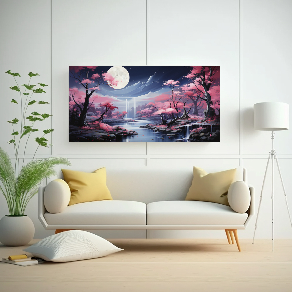 Tela En Bastidor Inspiración Escena Con Luna Cerca De Montañas