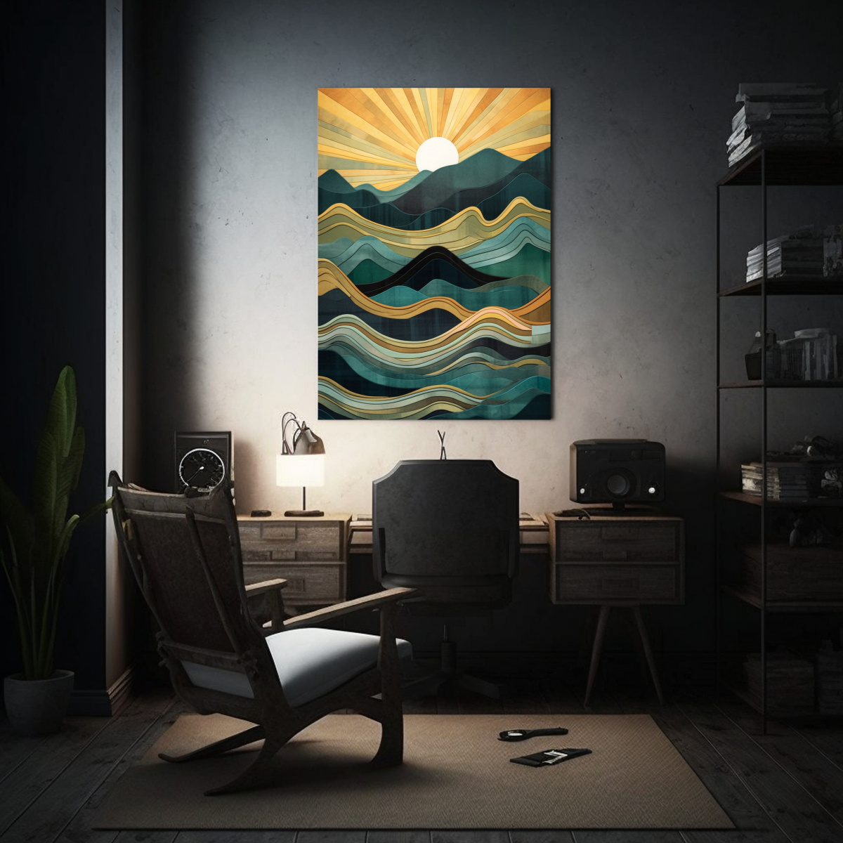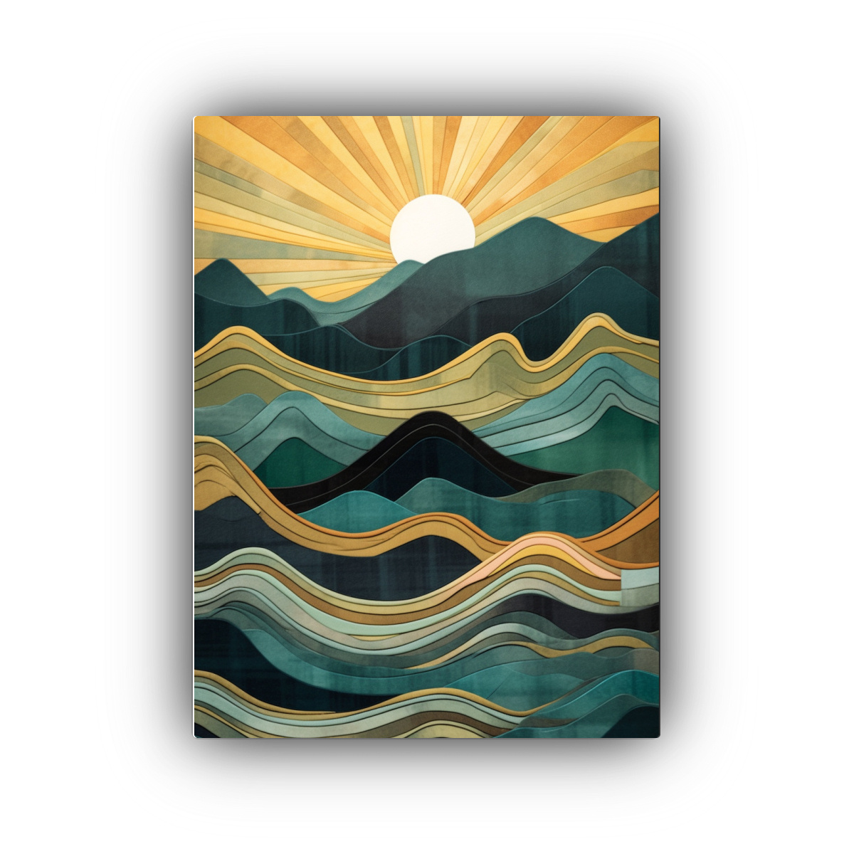 Este cuadro abstracto de montañas y océano estilo moderno será perfecto para decorar tu sala de estar Colócalo sobre una pared de color neutro, como el gris claro, para resaltar los tonos vibrantes de la pintura Combínalo con muebles en tonos blancos y beige para crear un ambiente relajante y sofisticado