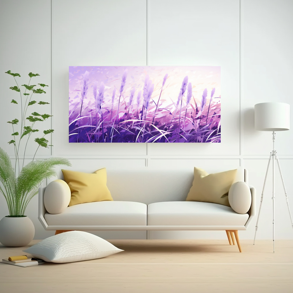DecoCuadros tiene los cuadros decorativos Tela en Bastidor Tonos Armonía cromática A Hierba de Carrizo en colores púrpura y blanco Diseños exclusivos de alta calidad y entrega rápida Aprovecha nuestros precios económicos