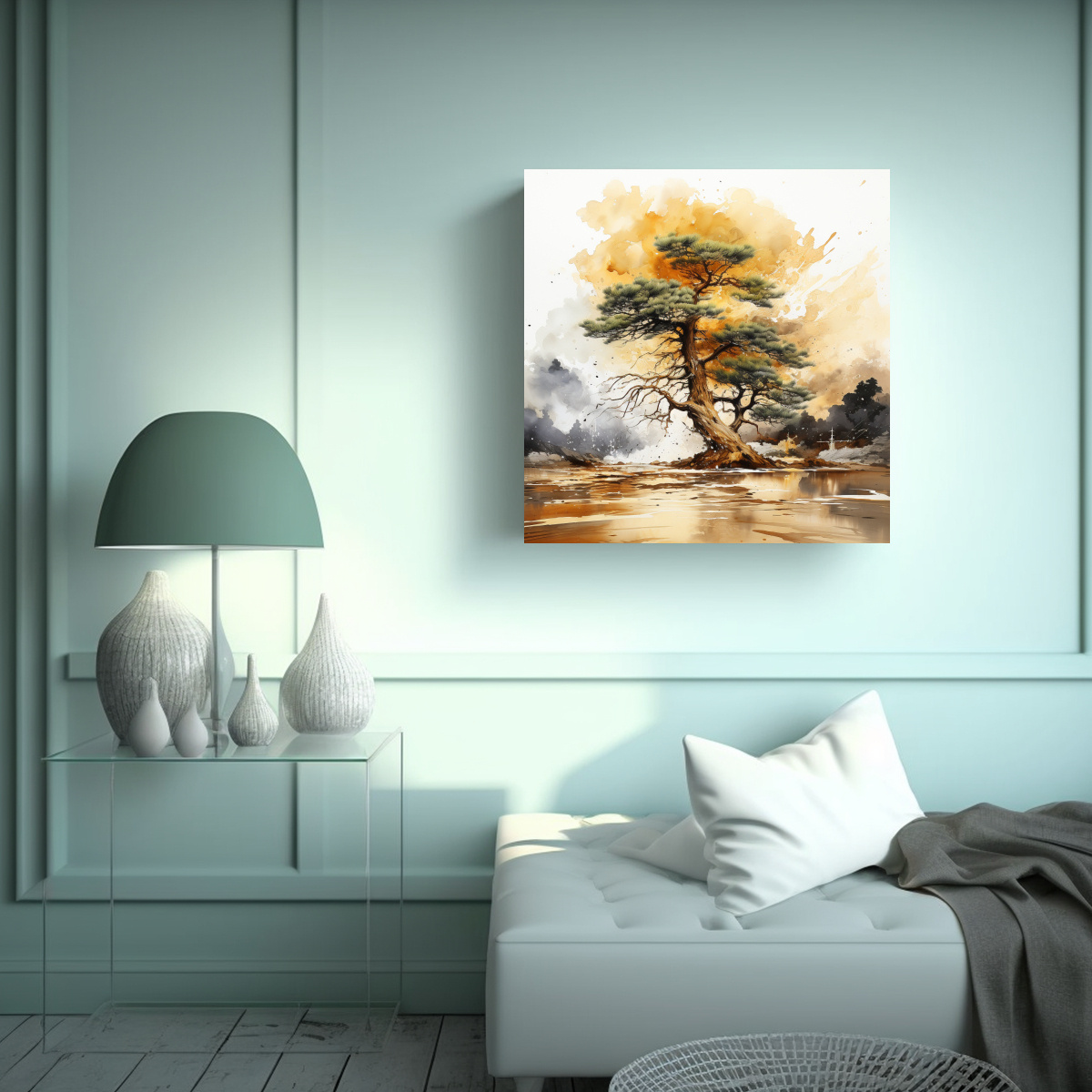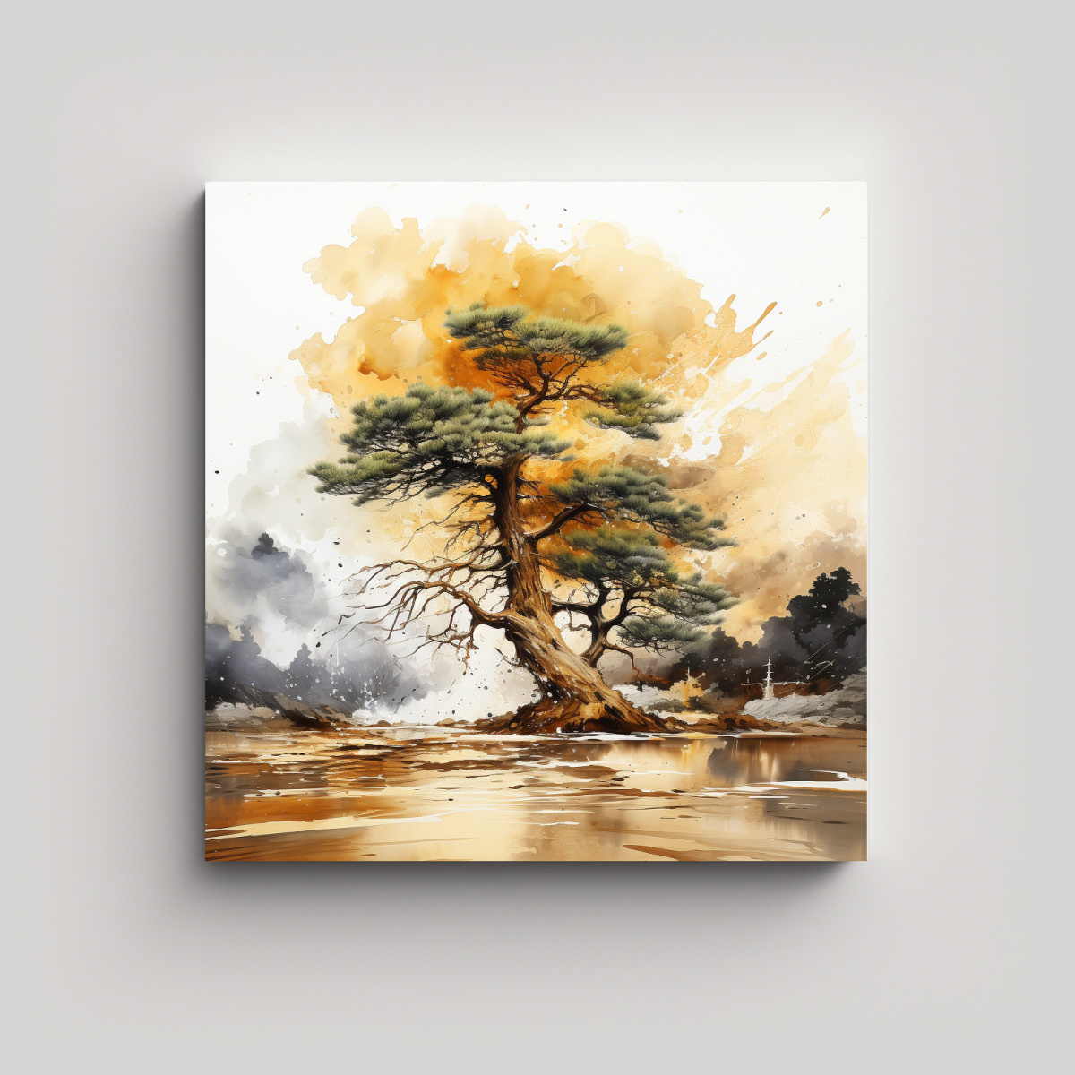 Tela Sublimada Exuberantes A Cedar Tree Gold AND Black Colors Pintura Abstracta