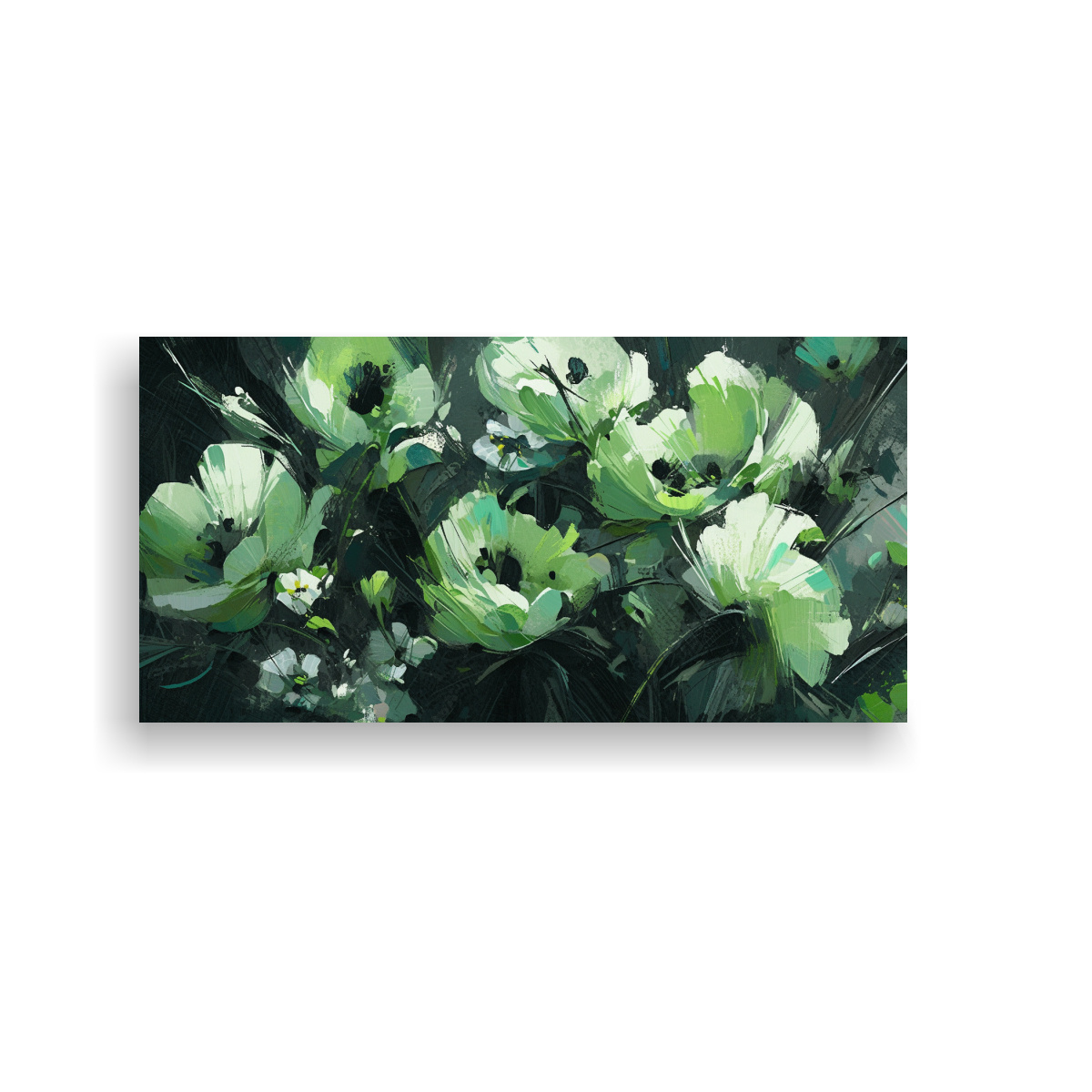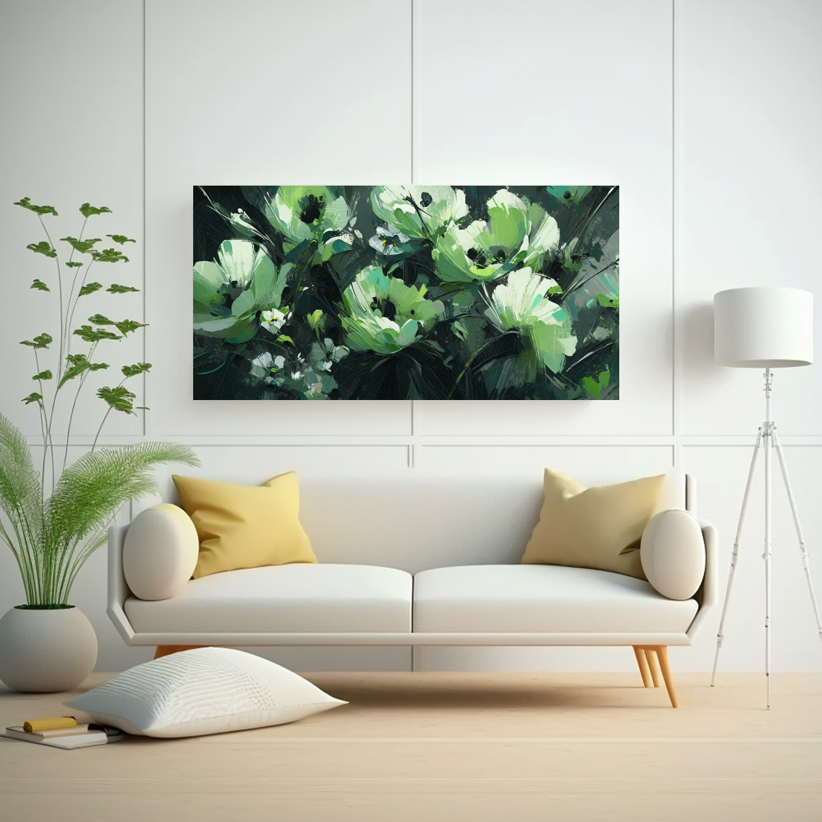 Tema Para Oficina: Pintura De Flores En Lienzo Verde Y Negro Para Decoración