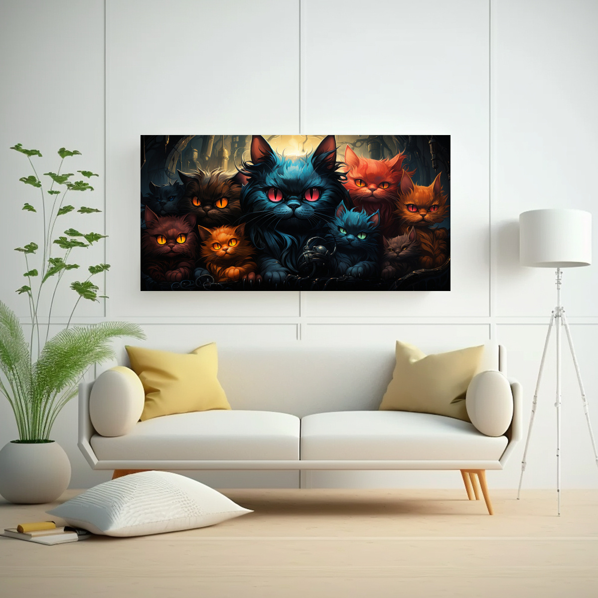 Coloca este cuadro de gatitos malvados en la sala de estar para darle un toque de diversión y originalidad al ambiente Combina con cojines en tonos similares para crear una armonía en la decoración