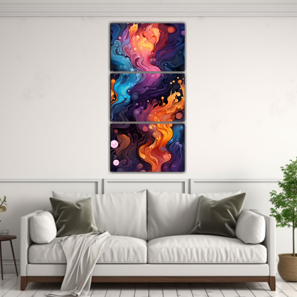 Recomendamos colocar estos cuadros en un salón moderno para resaltar la elegancia y sofisticación de este estilo Combínalos con muebles de líneas simples en tonos neutros como blanco o gris, y agrega elementos decorativos en colores vibrantes para lograr un contraste equilibrado ¡Crea un ambiente contemporáneo y llamativo con las Tres Composiciones de Belleza Abstracta!