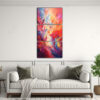 Este cuadro sería perfecto para añadir un toque moderno y vibrante a tu sala de estar Colócalo sobre un sofá gris claro para crear un contraste elegante Combínalo con cojines en tonos azul marino y turquesa para resaltar los colores del cuadro ¡Será el centro de atención de tu decoración!