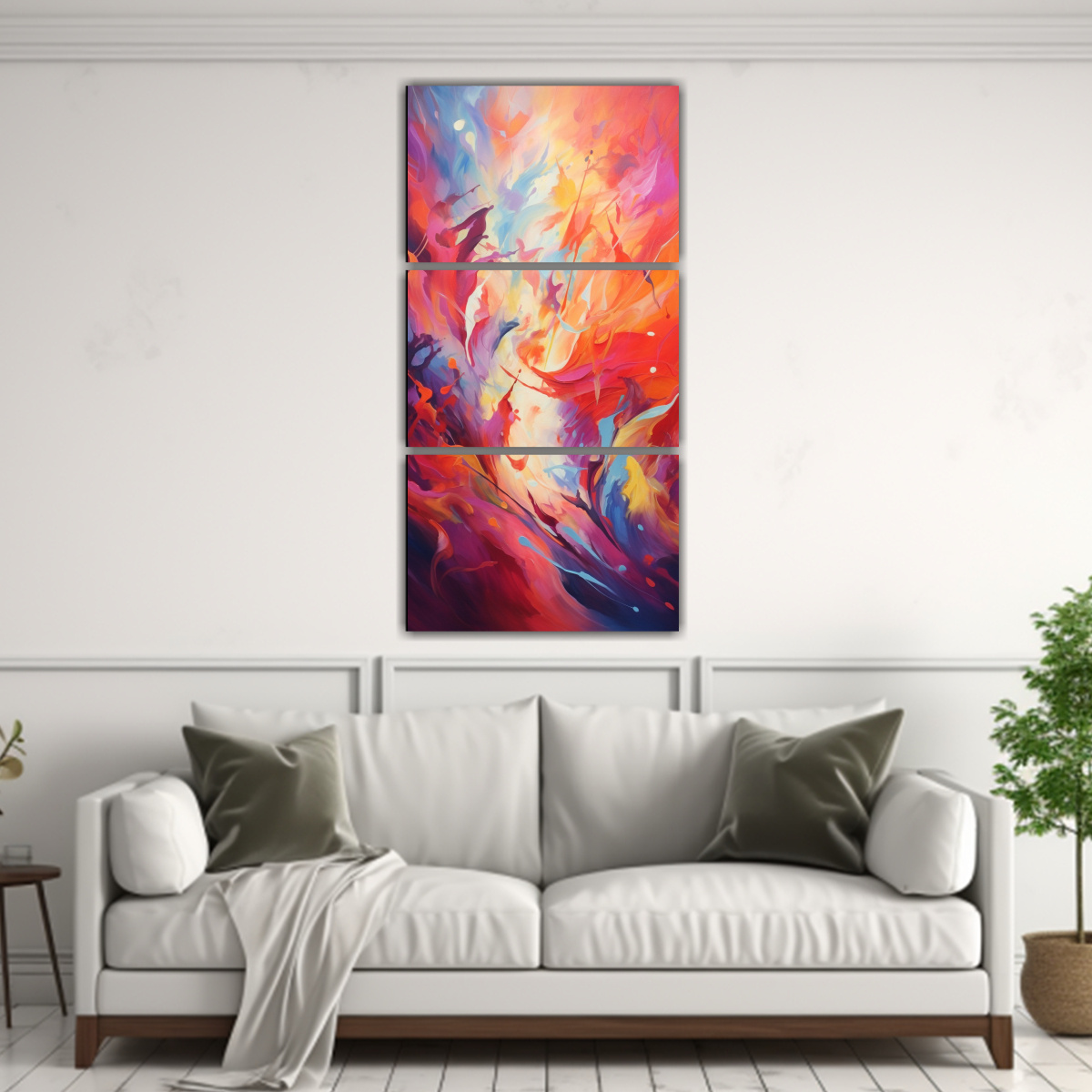 Dale vida a tus espacios con las Tres Composiciones Energéticas Abstractas en Poderoso Estilo Moderno de DecoCuadros ¡Envío rápido y gratis en Santiago!