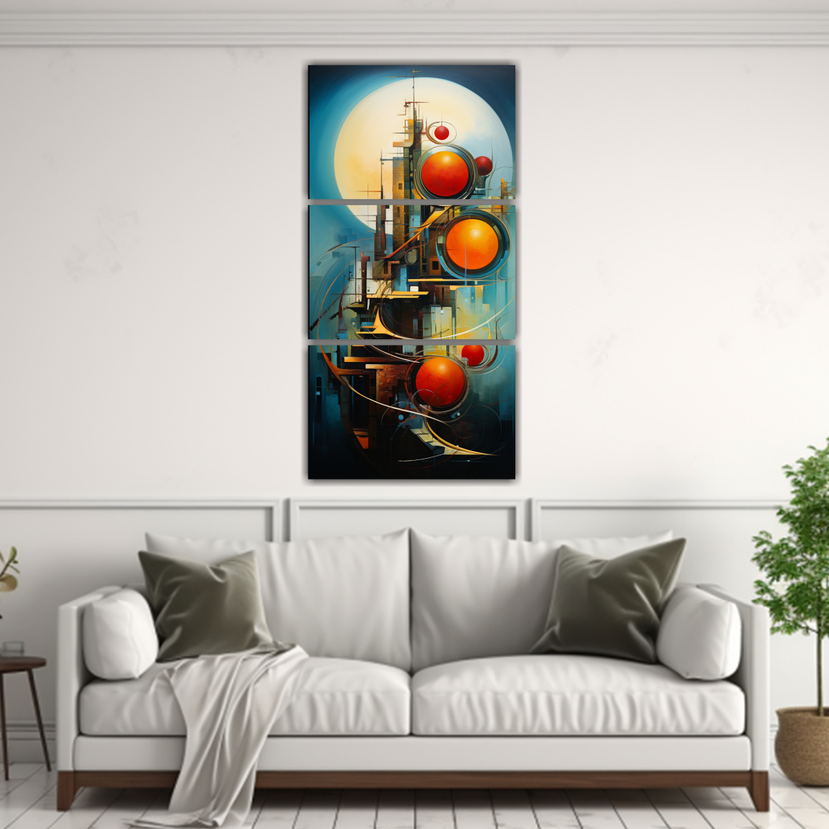 Estos tres cuadros abstractos son perfectos para decorar tu salón Una idea de cómo colocarlos es distribuirlos de forma simétrica en una pared de tono neutro, como el blanco o el gris claro De esta manera, resaltarán y crearán un punto focal en tu salón, aportando estilo y elegancia a la decoración