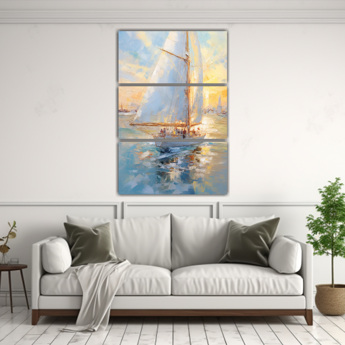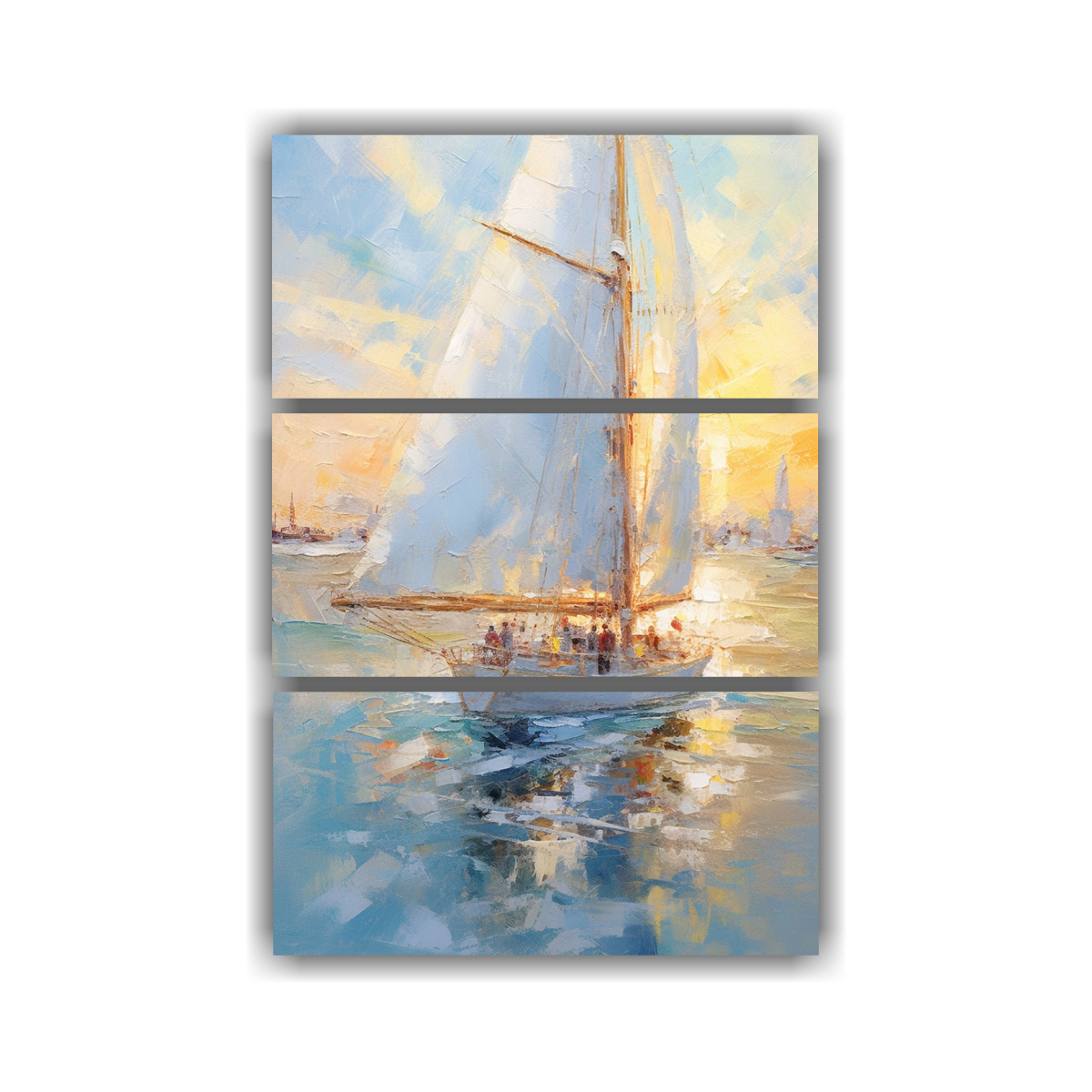Tres Cuadros Estilo Galería Culturar Tiara En Lienzo Inspirado En Pinturas De Decoración De Veleros En El Mar