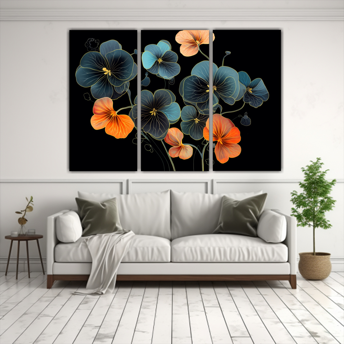 Tres Fotografías Exuberantes De Nasturtium En Negro: Neonoir Decor.