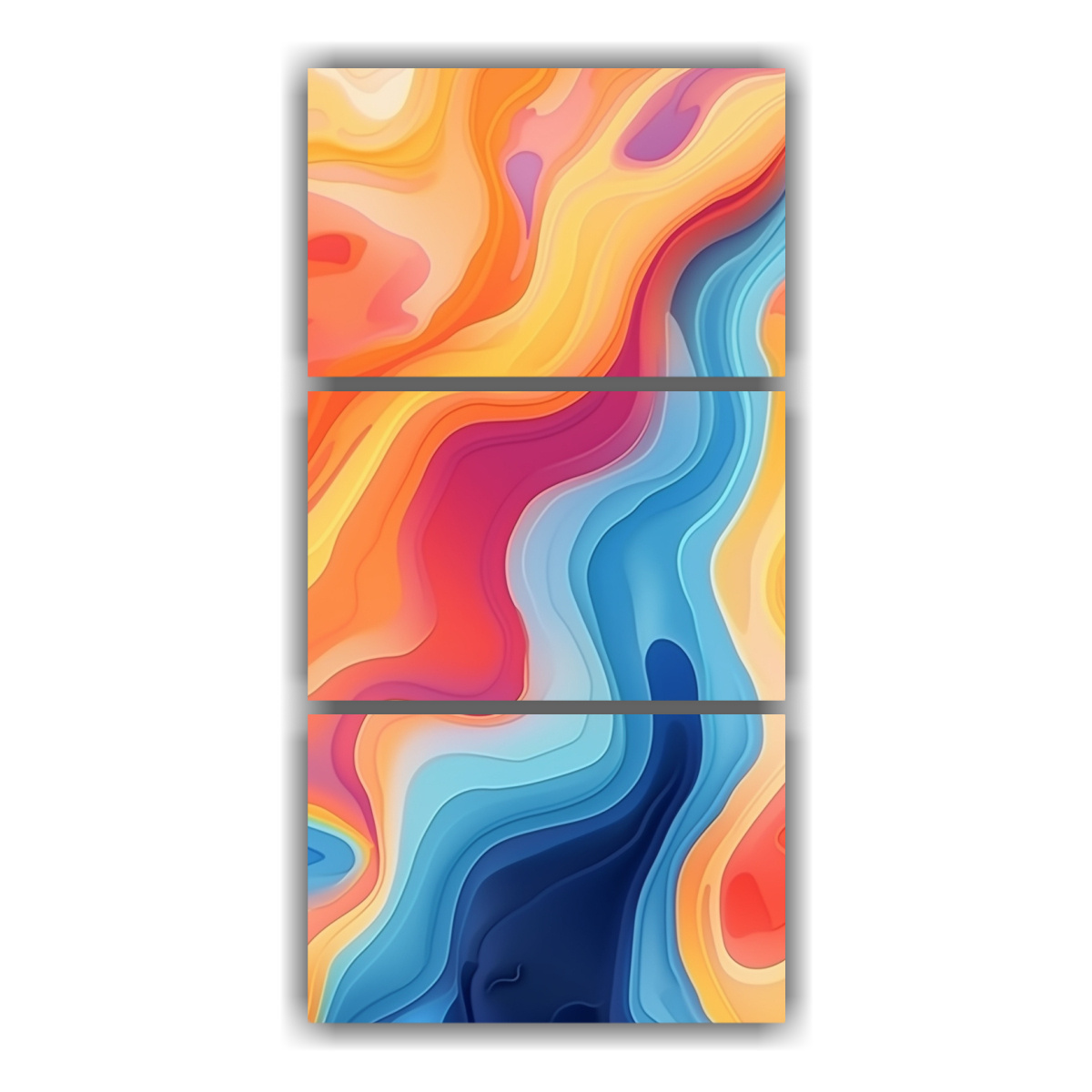 Decora tus espacios con el cuadro Tres Lienzos Colores Culturar de DecoCuadros Este cuadro con fondo abstracto y líquido colorido en tonos turquesa, coral, carmesí, plateado y más, le dará un toque único a tus ambientes Adquiere diseños exclusivos de alta calidad y precios económicos