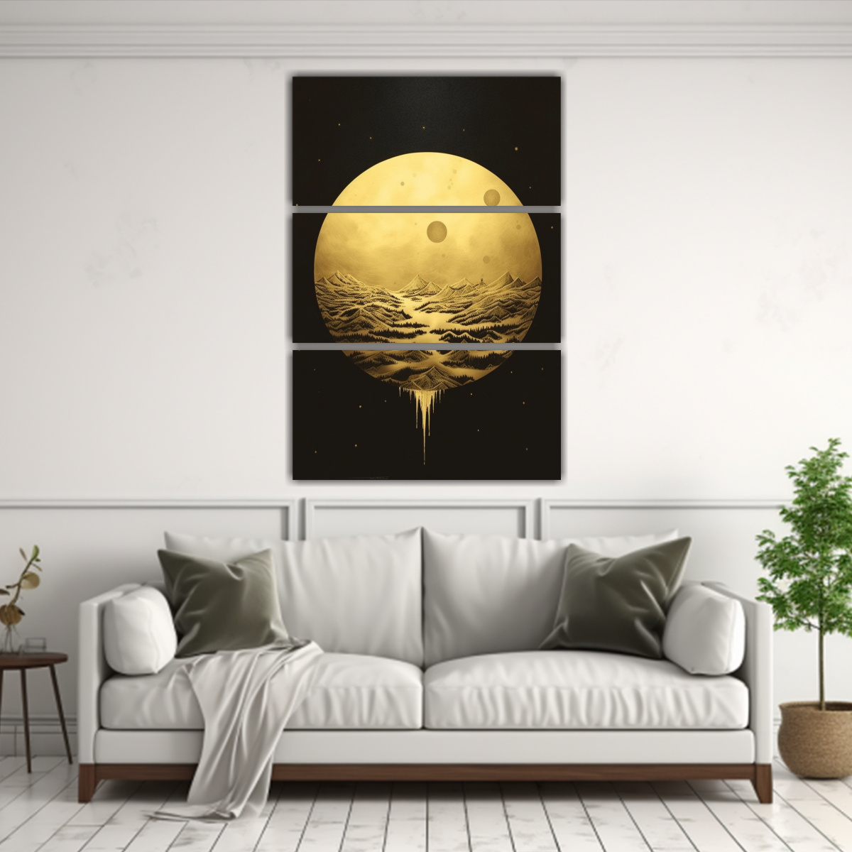 Tres Lienzos De Tela Conceptual Alegría Luna Dorada Por Anthony Follie En Estilo Monocromático