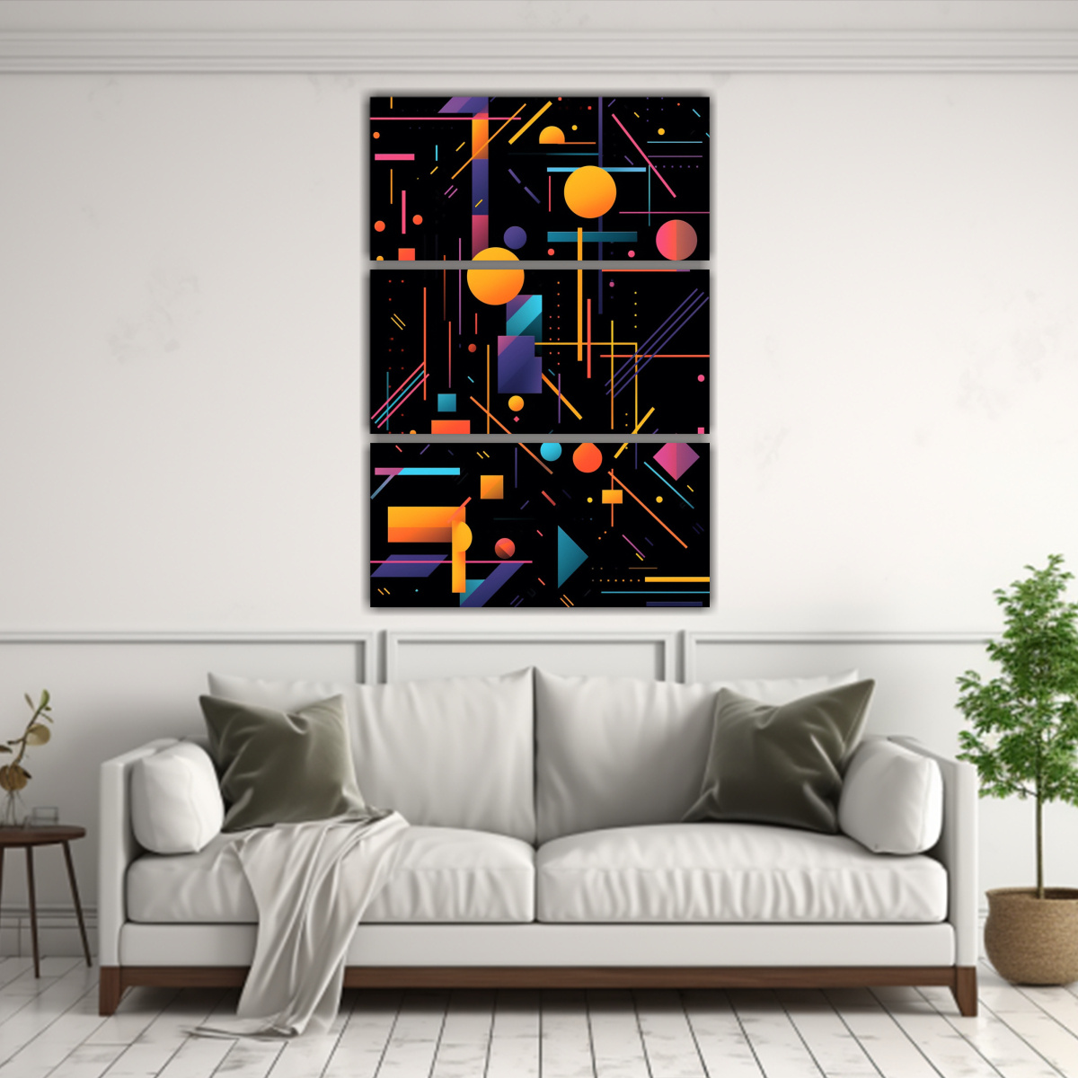 Tres Lienzos De Tela Conceptual Bonito A Cool And Modern Wallpaper With Abstract Shapes And Decor Paintings.