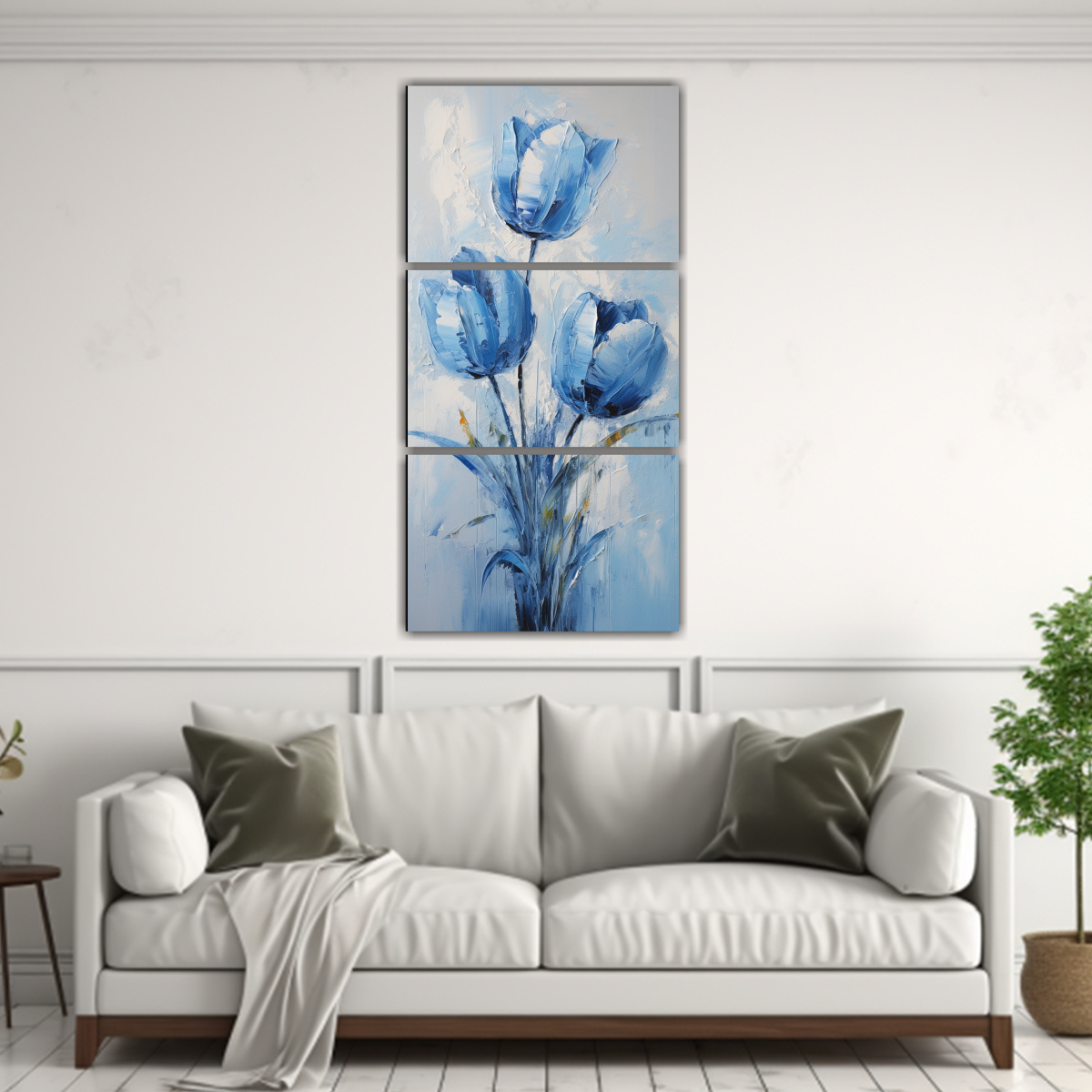 Este cuadro de TULIPS en azul se vería espectacular en una sala de estar moderna o en un dormitorio minimalista Puedes colocarlo sobre un mueble blanco o en una pared de tonos claros para resaltar su belleza y añadir un toque de color al ambiente