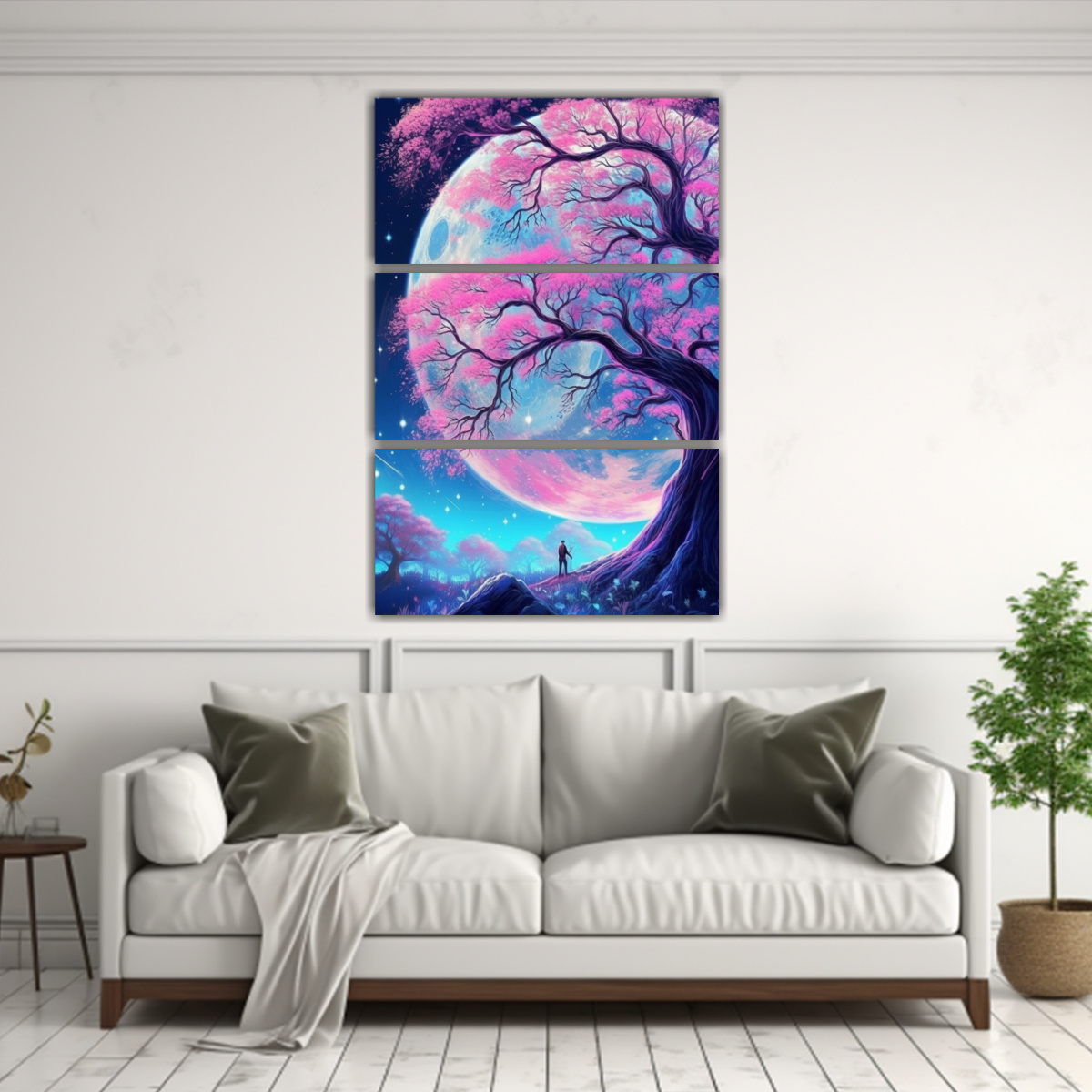 Tres Lienzos De Tela Dibujo Simple En Vegas El Arte De La Luna Y Los árboles En Papel Tapiz En La Decoración De Las Pinturas Del Hogar