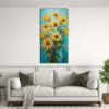 Este cuadro de girasoles turquesa se vería espectacular en una sala de estar o en un dormitorio Combínalo con muebles en tonos neutros como grises o blancos para resaltar aún más los colores vibrantes del cuadro También puedes agregar cojines o cortinas en tonos turquesa para crear una armonía en la decoración