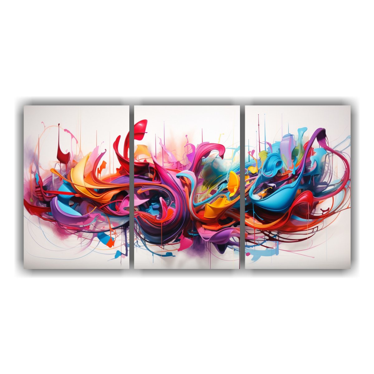 Este cuadro de tres lienzos de tela con hermosos colores abstractos sería perfecto para decorar una sala de estar moderna Colócalo encima de un sofá de color neutro para crear un punto focal llamativo en la habitación Combínalo con cojines y accesorios en tonos similares para lograr una armonía visual ¡Atrévete a agregar un toque de color y estilo a tu hogar con este cuadro único de DecoCuadros!