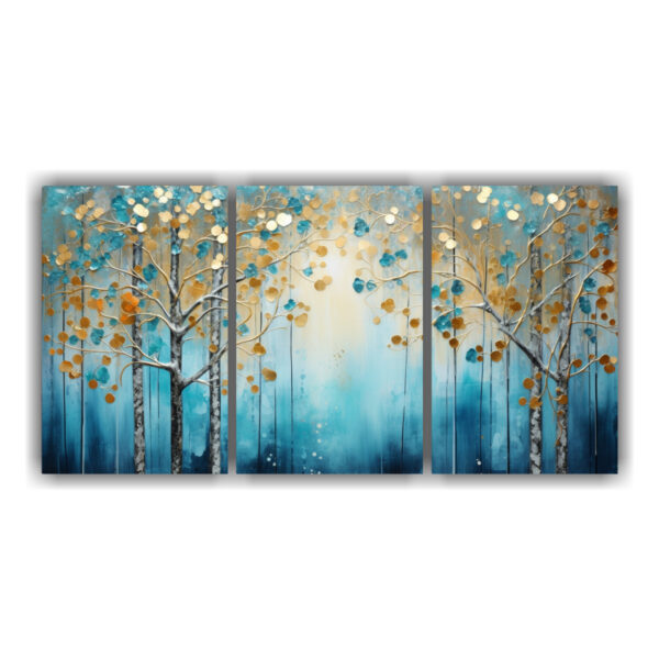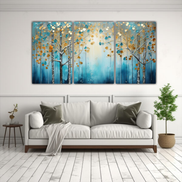 Tres Lienzos De Tela Moderno Living En Colores Turquesa Y Dorado En La Decoración De Pinturas Estampadas