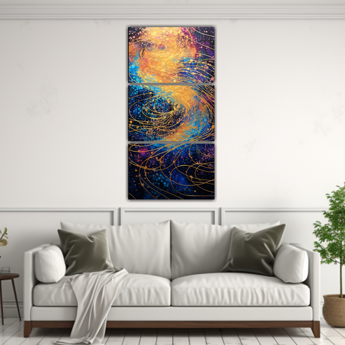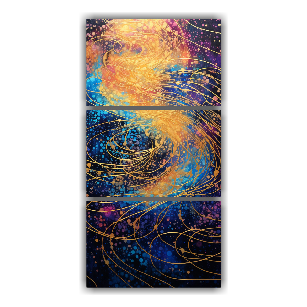 Tres Lienzos Decoración Reflejo Estilo Puntillismo Luminoso Hecho Con Líquidos.