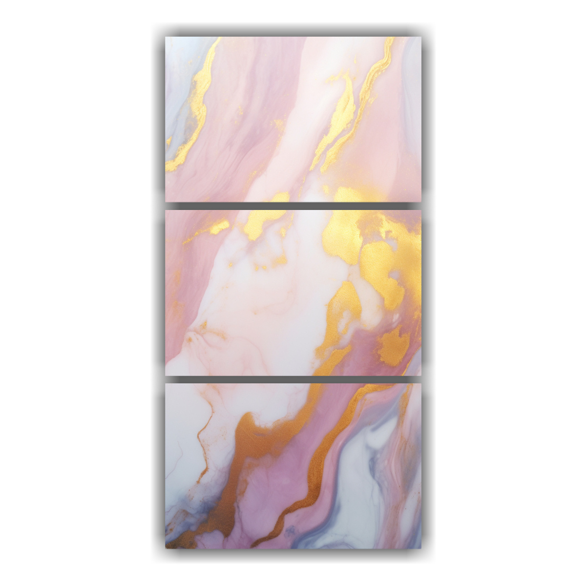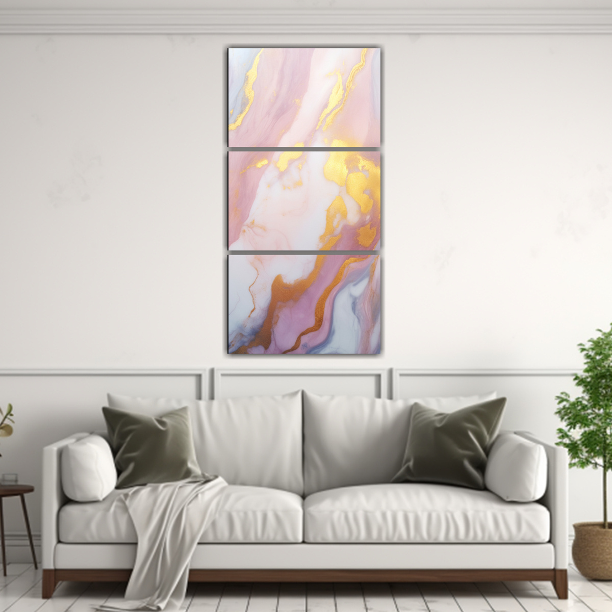 Tres Lienzos Estilo Galería Culturar Mármol Eldritch Colores Pastel Oro Y Pátina Dispersa