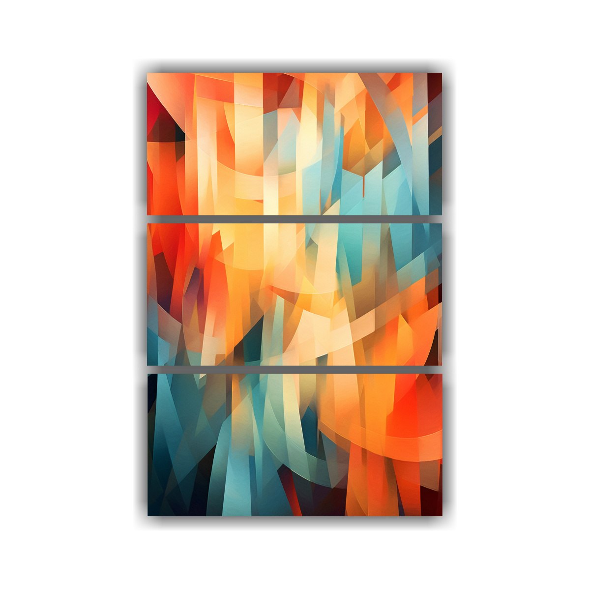 Tres Lienzos Modernos Perspectiva Color Splash Hd Geometría Abstracta