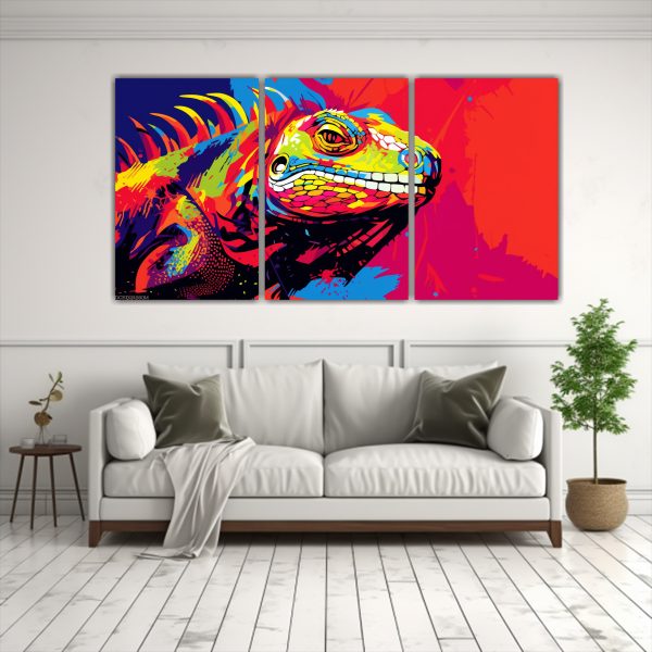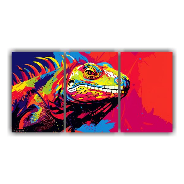Tres Lienzos Tela Creativa Lagartos Vibrantes Y Rojos Neo Pop Art.