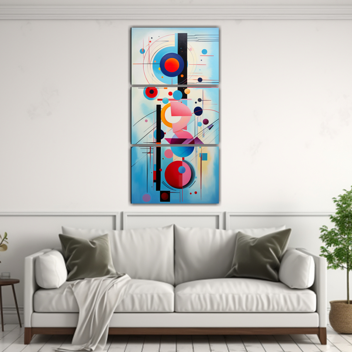 Renueva tu hogar con estos tres lienzos de tela creativa simétricos de inspiración Kandinsky Aporta un toque contemporáneo y colorido a tus espacios Ideal para salas, dormitorios o áreas de trabajo ¡Compra ahora y disfruta de la mejor calidad!