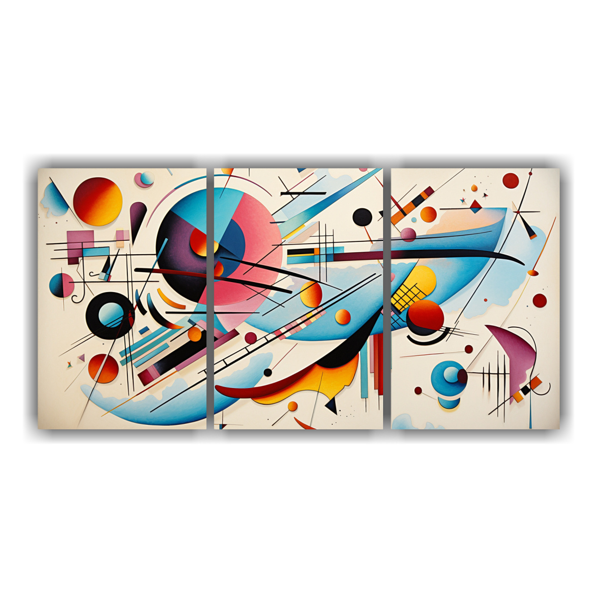 Decora tu hogar con el cuadro Tres Telas en Bastidor, una moderna pintura abstracta de Wassily Kandinsky Disponible en colores beige, azul marino grisáceo, carmesí, turquesa, verde azulado, mostaza, coral, lila y plateado Cuadros decorativos impresos en tela de alta calidad con bastidores de madera Encuentra los diseños exclusivos y la mejor calidad al mejor precio en DecoCuadros Ofrecemos entregas rápidas y gratuitas en Santiago, y envíos express a regiones