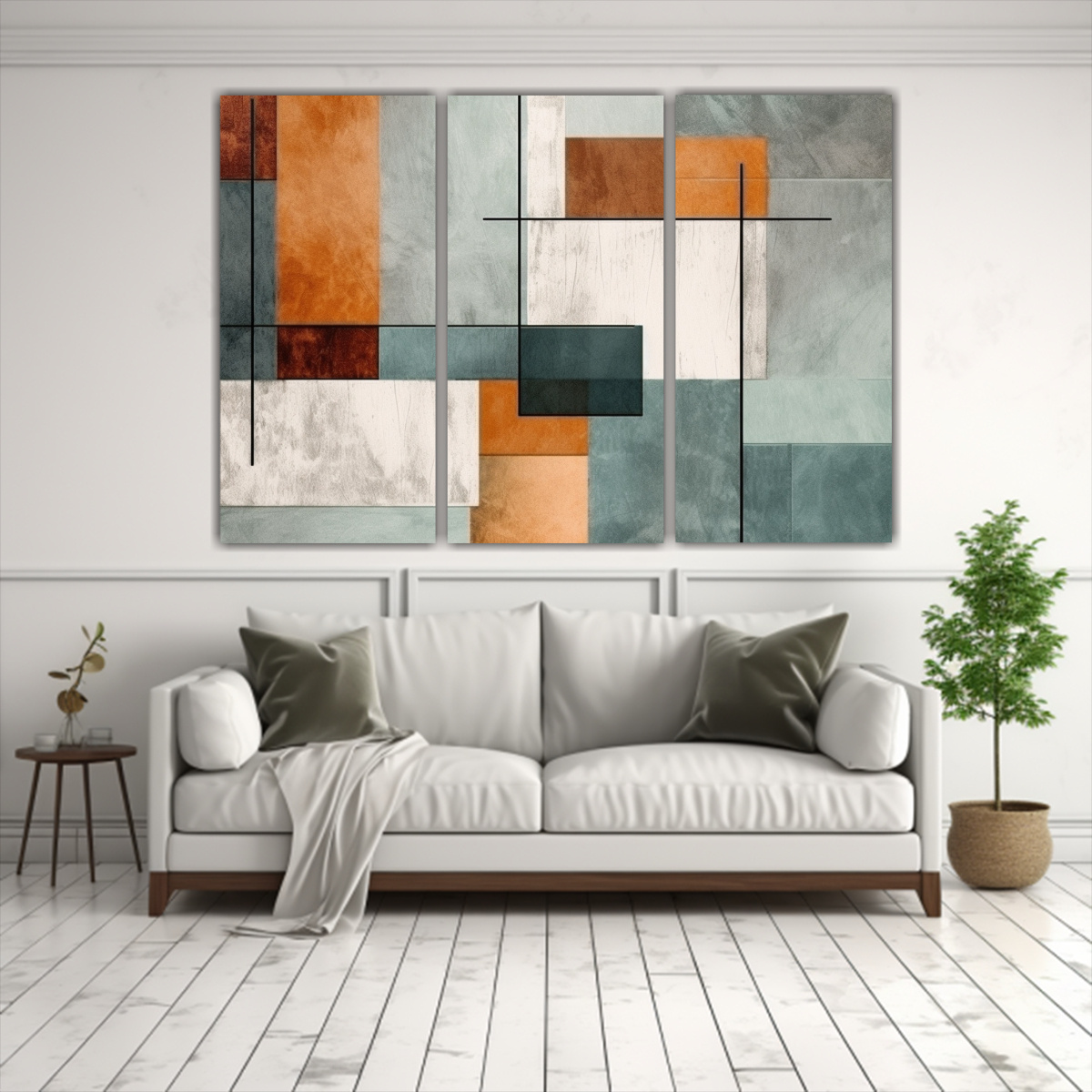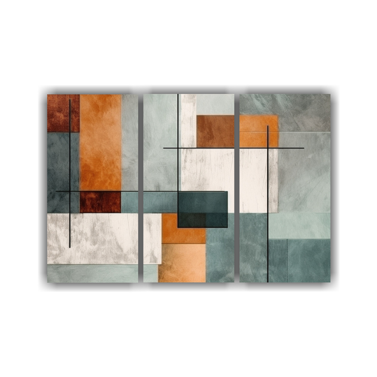 Tres Telas En Bastidor Tela Canvas Reflejo Del Arte Abstracto En Fondo.