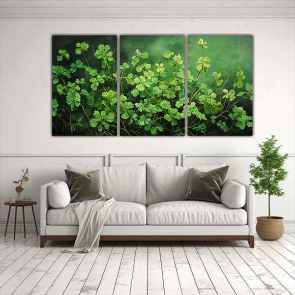Trío Cuadros Modernos Personalidad Trébol Hierbas Abstracto Estilo Estilo óleo