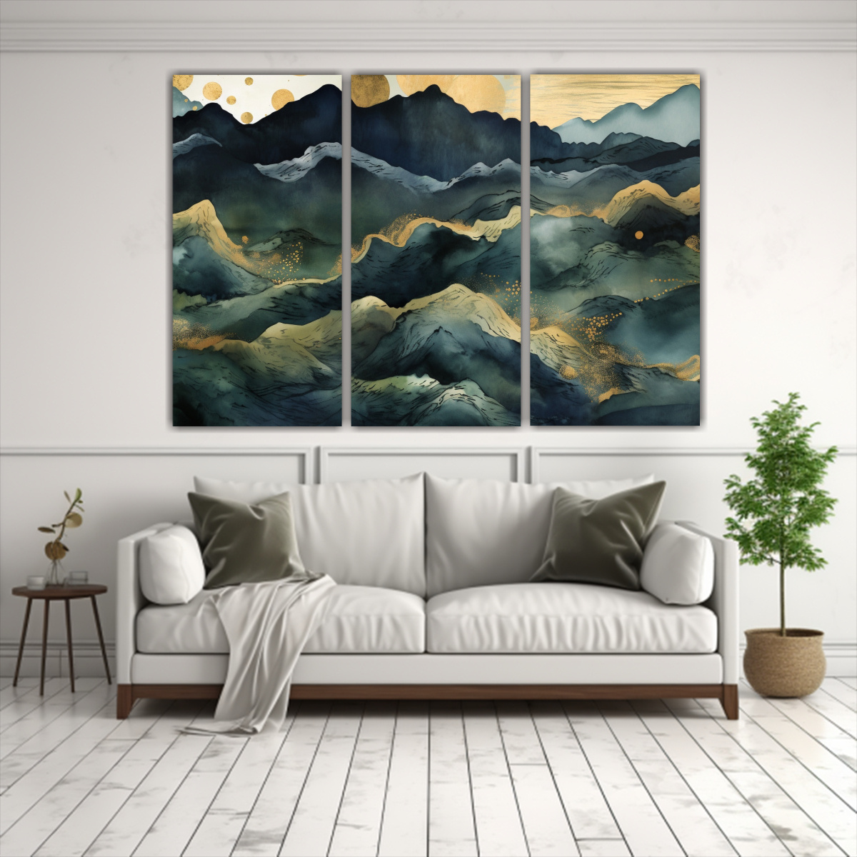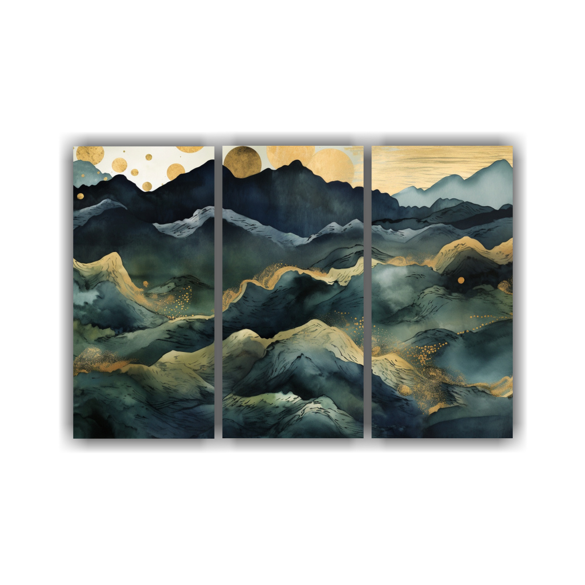 Este tríptico de montañas en acuarela sobre acrílico es perfecto para realzar la decoración de tu sala de estar Colócalo sobre un sofá blanco para crear un contraste elegante y moderno