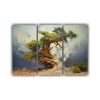 Tríptico Abstracto Árbol De Junípero Azul Pintura Acuarela Minimalista