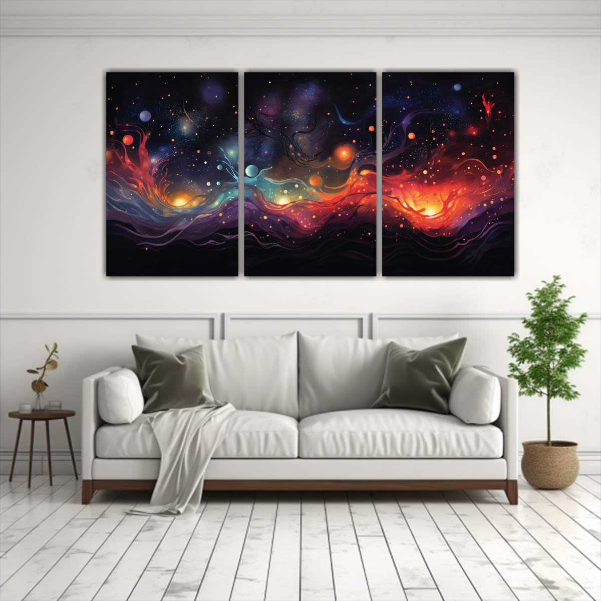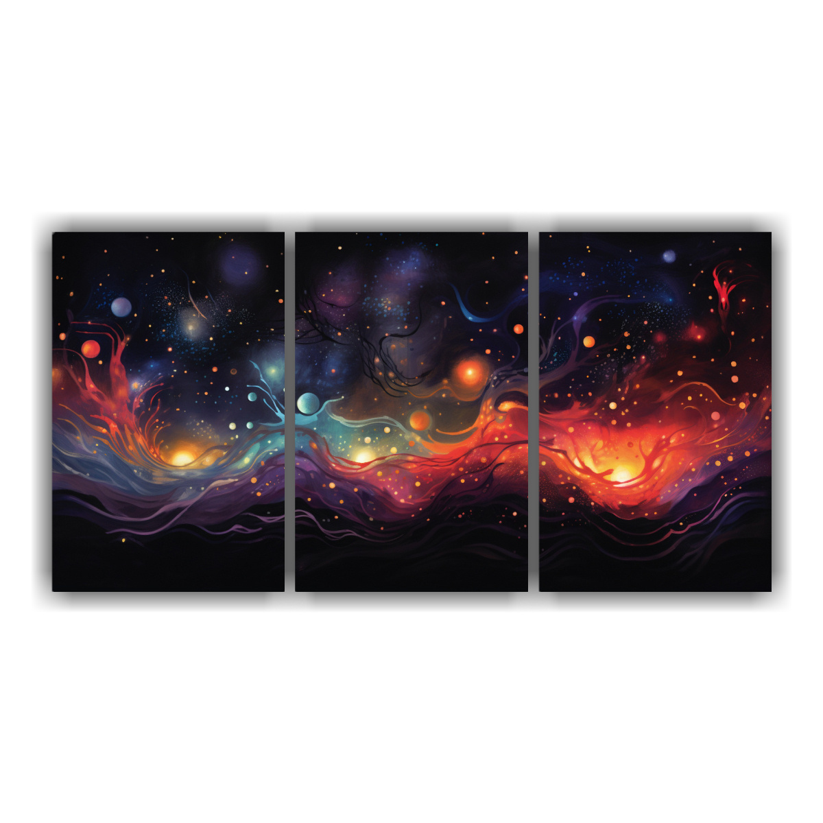 Tríptico Abstracto: La Danza Surrealista De Constelaciones En Una Pintura Decorativa.