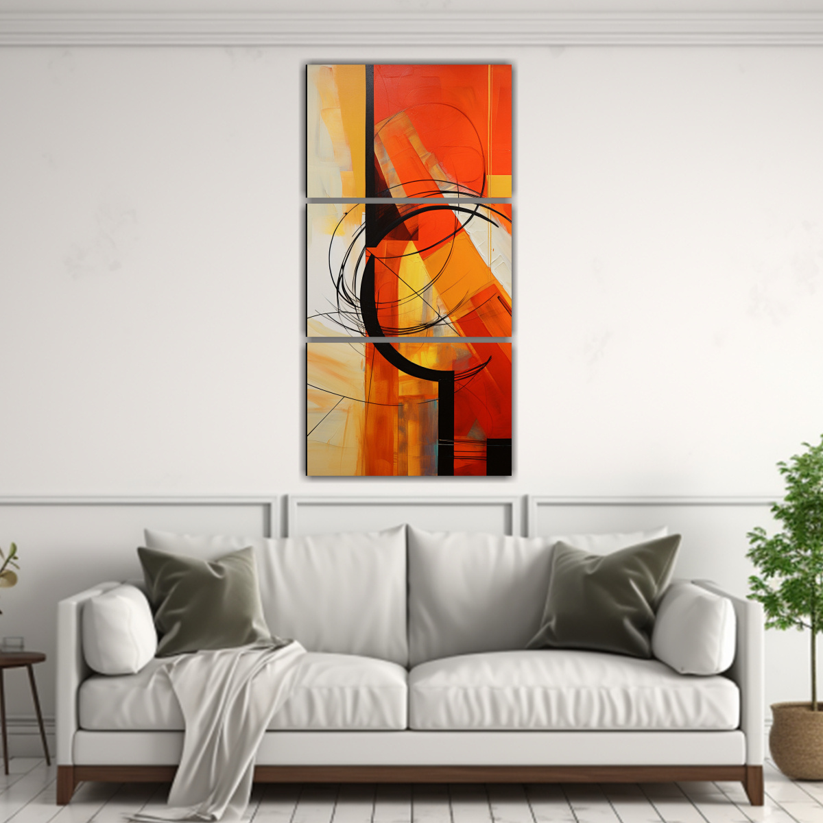 Tríptico Abstracto Moderno Con Mucho Color Naranja Para Decorar La Oficina