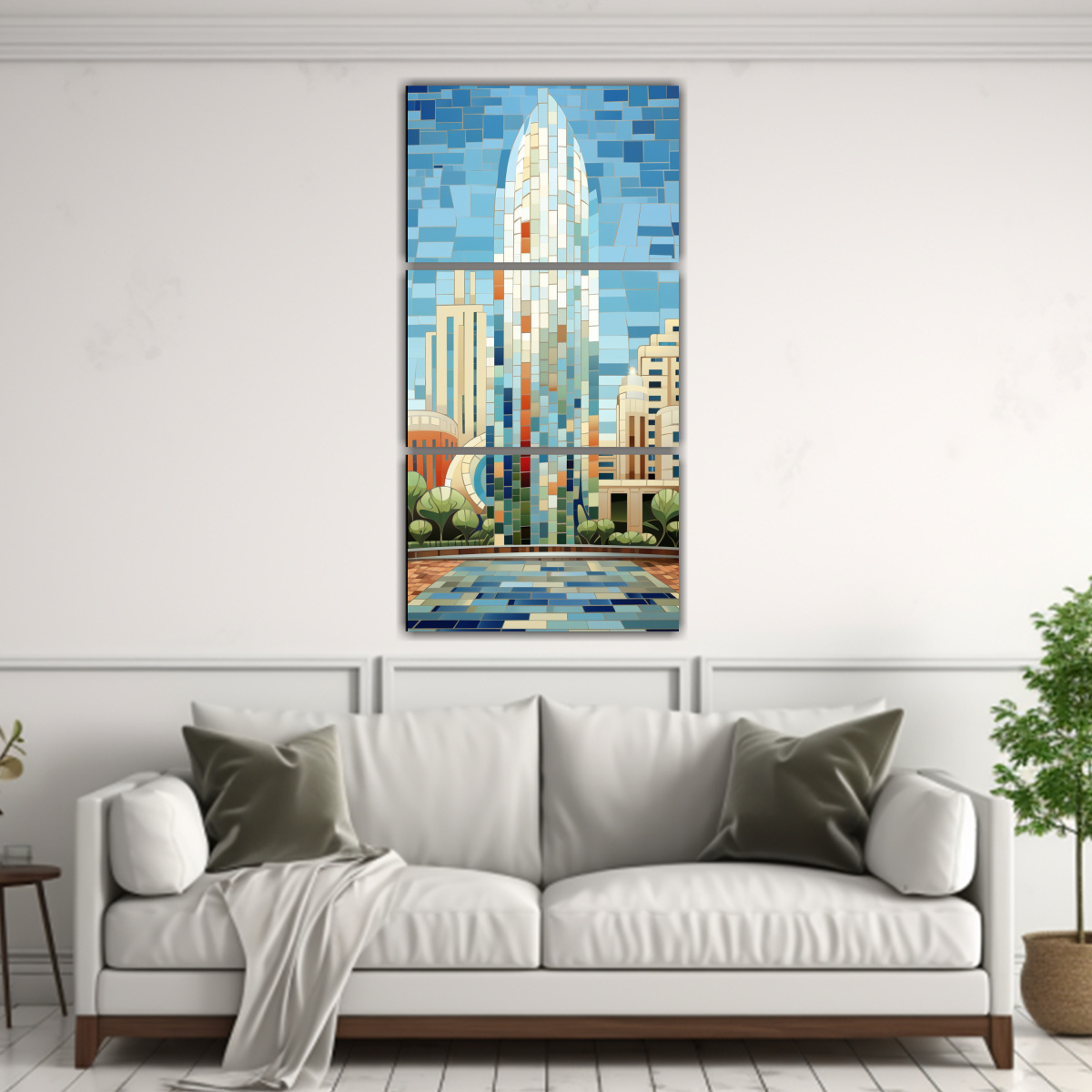 Tríptico Abstracto Mosaico Composición Moderna Para Decoración