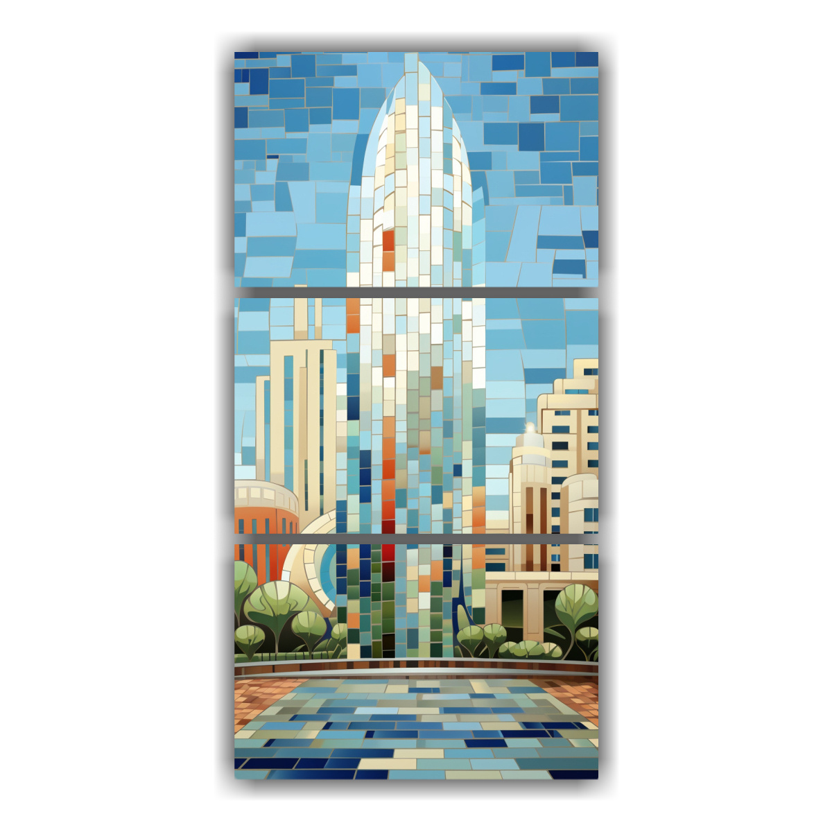 Decora tus espacios con el Tríptico Composicion Minimalismo building company style mosaic modern Background en colores Azul Marino grisaceo, Turquesa, Beige, Dorado, Chocolate, Gris, Plateado y Menta La mejor calidad y los precios más bajos