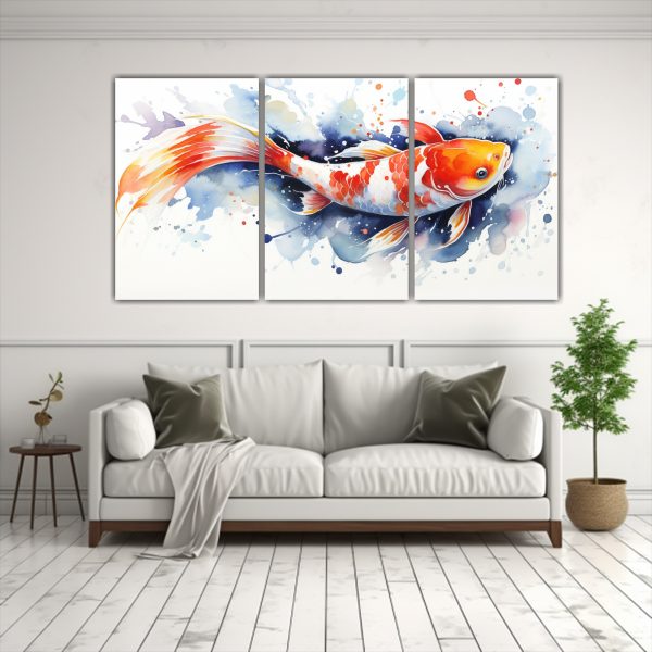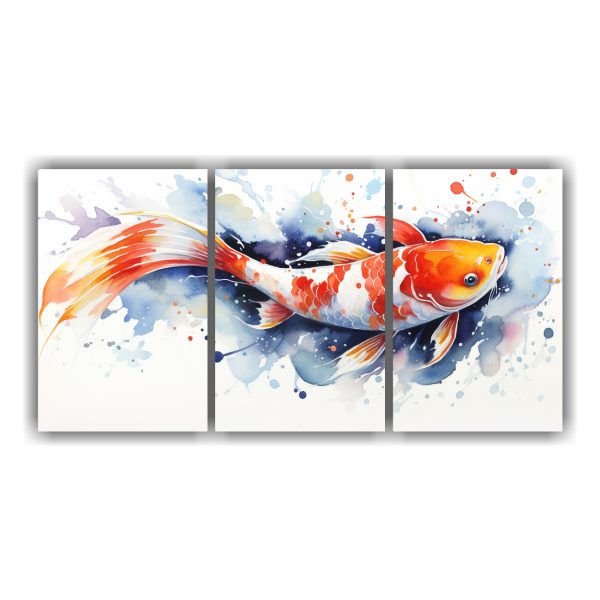 Tríptico Acuarela Elegante Koi Pintura Colorida Estilo Peces 21