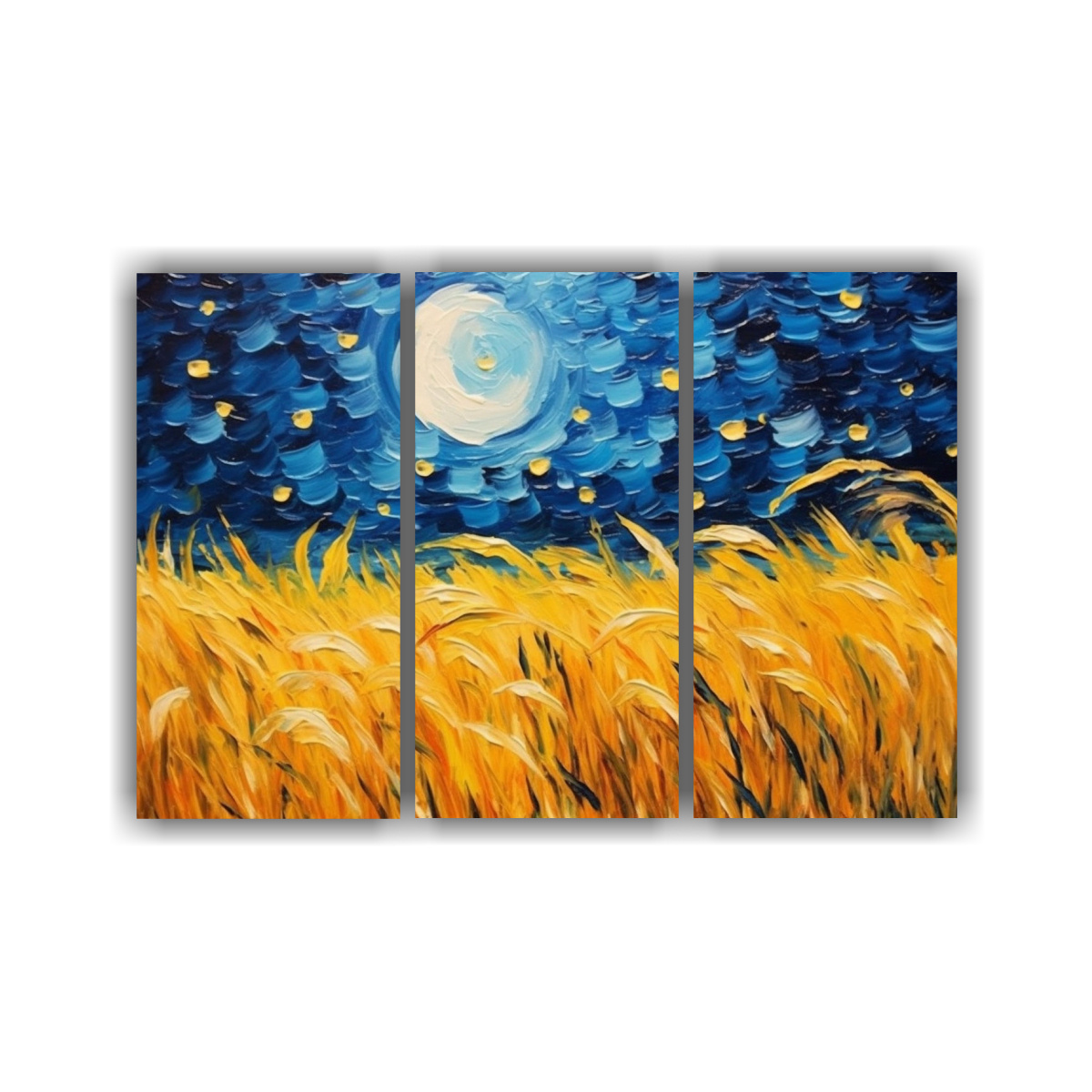 DecoCuadros ofrece los precios más baratos del mercado en cuadros decorativos de alta calidad El Tríptico Arte Representación Noche Estrellada Sobre Campo Trigal es ideal para darle un toque de elegancia a tu sala de estar o dormitorio