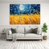 Tríptico Arte Representación Noche Estrellada Sobre Campo Trigal.