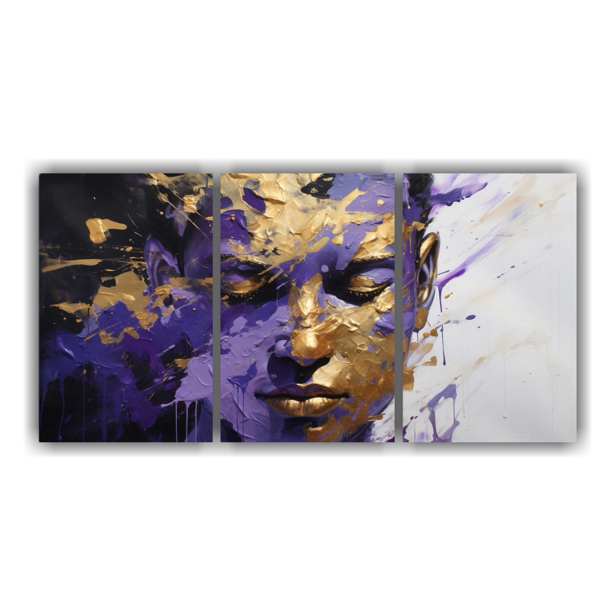 Tríptico Arte Simetría Facial Tonos Oro Y Púrpura Decoración Pinturas