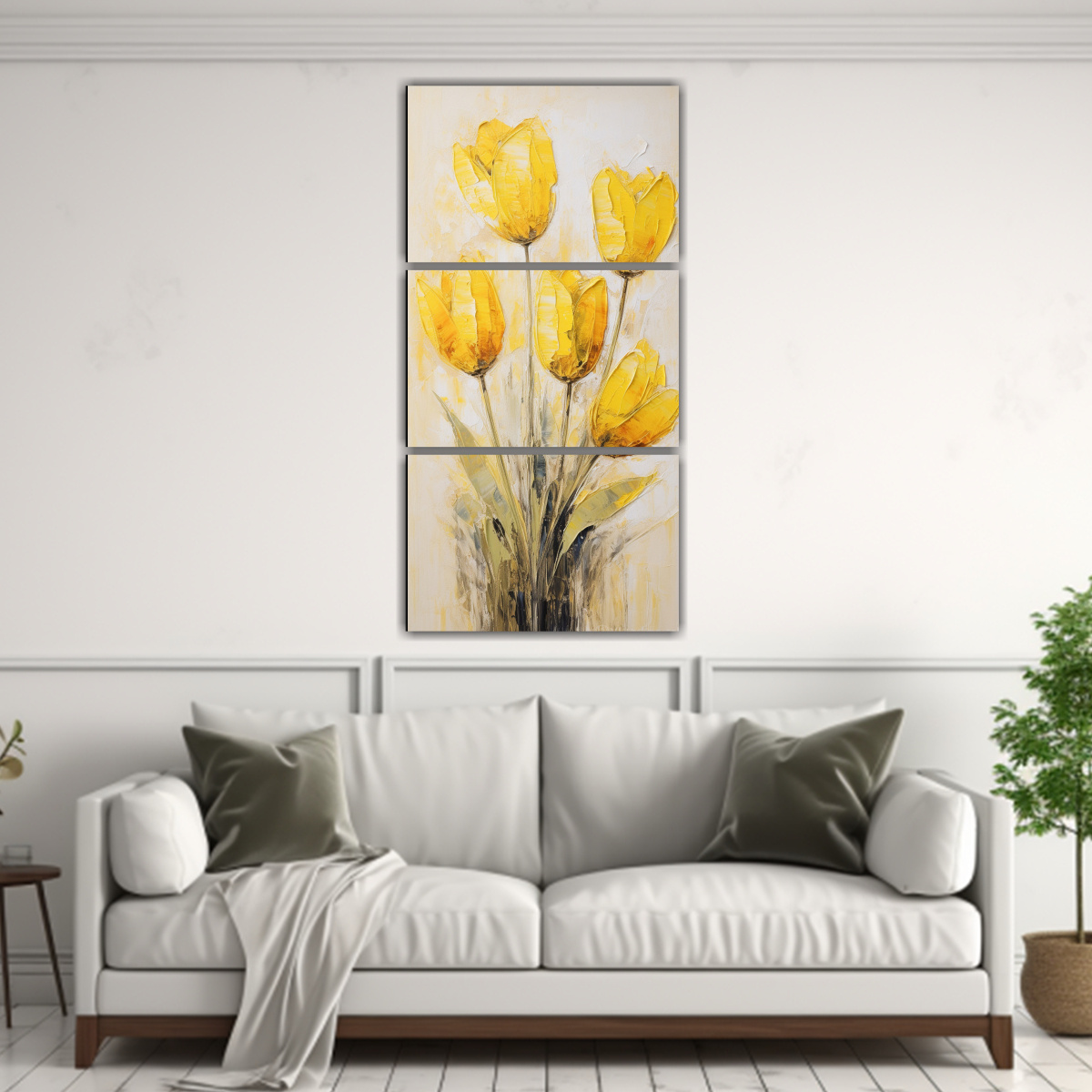 Tríptico Colores Armonía Amarillo Tulipanes En Lienzo Estilo Decorativo