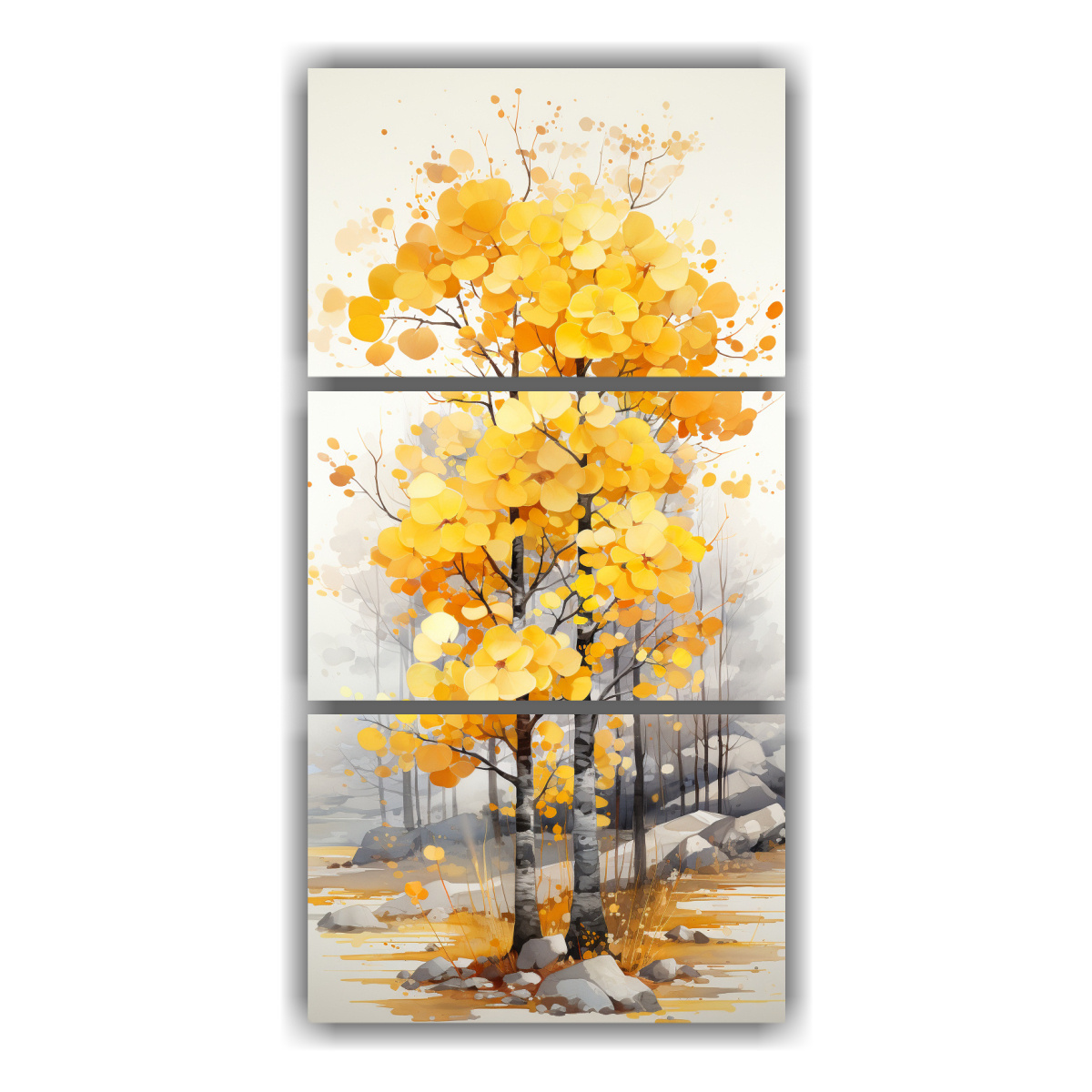Tríptico Contraste Árbol Temblón Amarillo Y Dorado Abstracto Doloroso