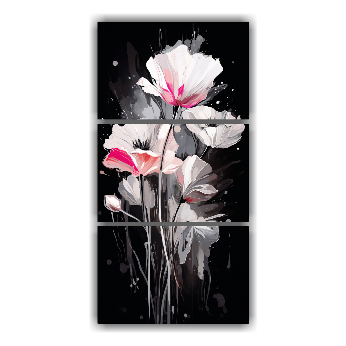Coloca este tríptico en la sala de estar sobre un sofá de color neutro para resaltar su elegancia y misterio Combina con cojines en tonos grises, rosados y negros para crear un ambiente sofisticado y a la vez acogedor