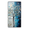 Tríptico De Expresión Composición Equilibrada: Árbol En Azul Y Plata En La Obra De Decoración.