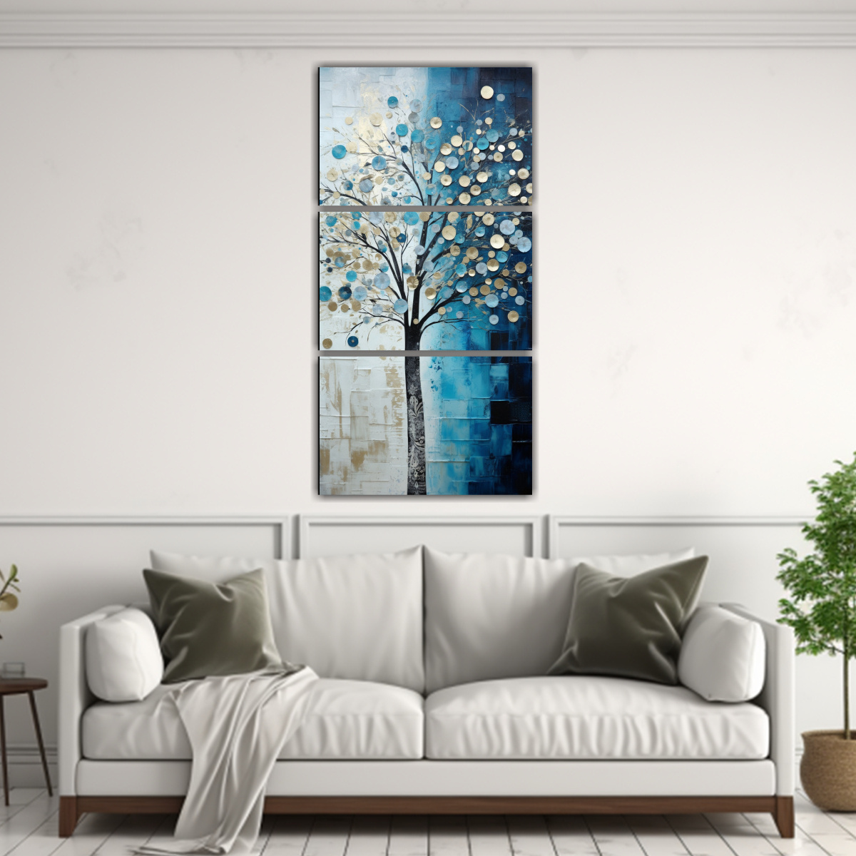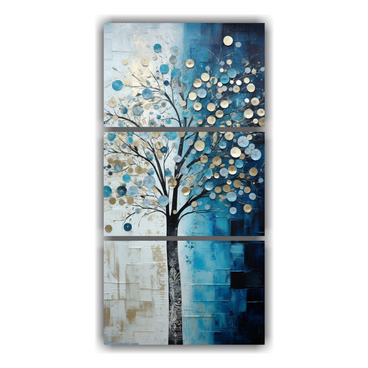 Decora tu espacio con el Tríptico de Expresión Composición Equilibrada: Árbol en Azul y Plata Envío gratis en Santiago