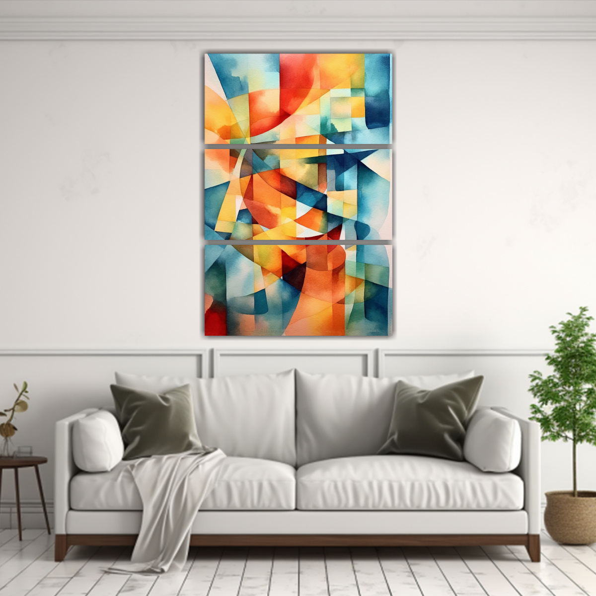 Tríptico De Imagen Para Oficina, Acuarela Abstracta Contemporánea Diversas Pinturas De Decoración