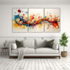 Este Tríptico Decorativo Intenso pinturas abstractas con acuarelas quedará perfecto en tu sala de estar Colócalo sobre un sofá de tonos neutros para crear un contraste impactante También puedes combinarlo con muebles y accesorios en tonos plateados y azules para lograr una estética elegante y moderna ¡Dale vida a tus paredes con este cuadro exclusivo de DecoCuadros!