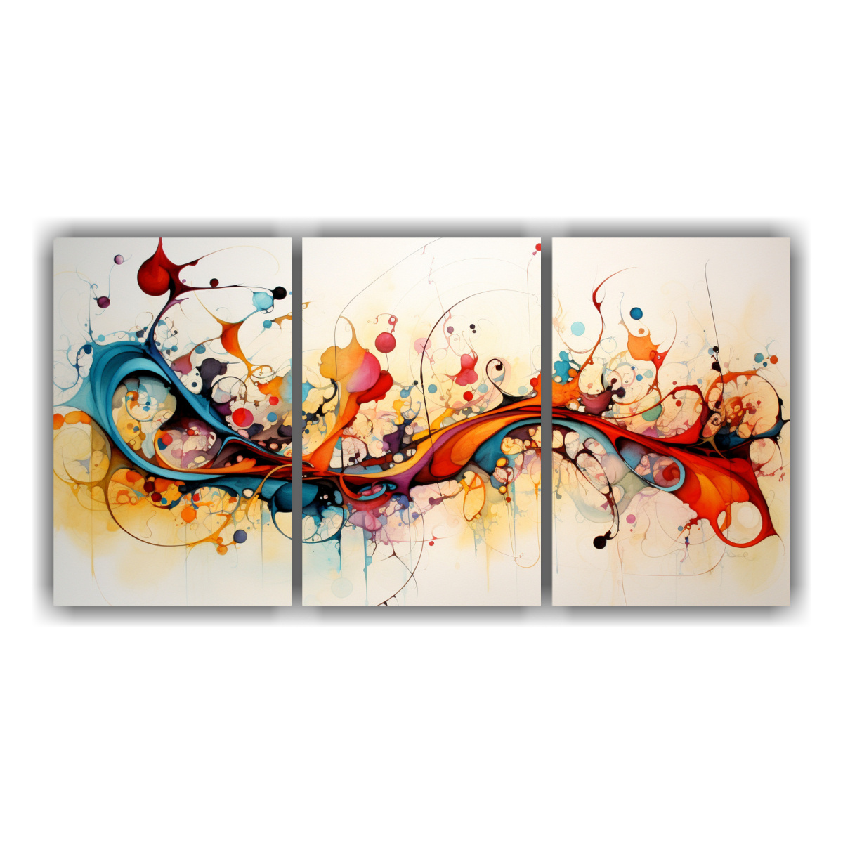 Tríptico De Pinturas Abstractas Intensas Con Acuarelas