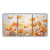 Tríptico De Tonos Resistentes Con Flores En Colores Naranja Y Rosa En Pintura Sobre Lienzo