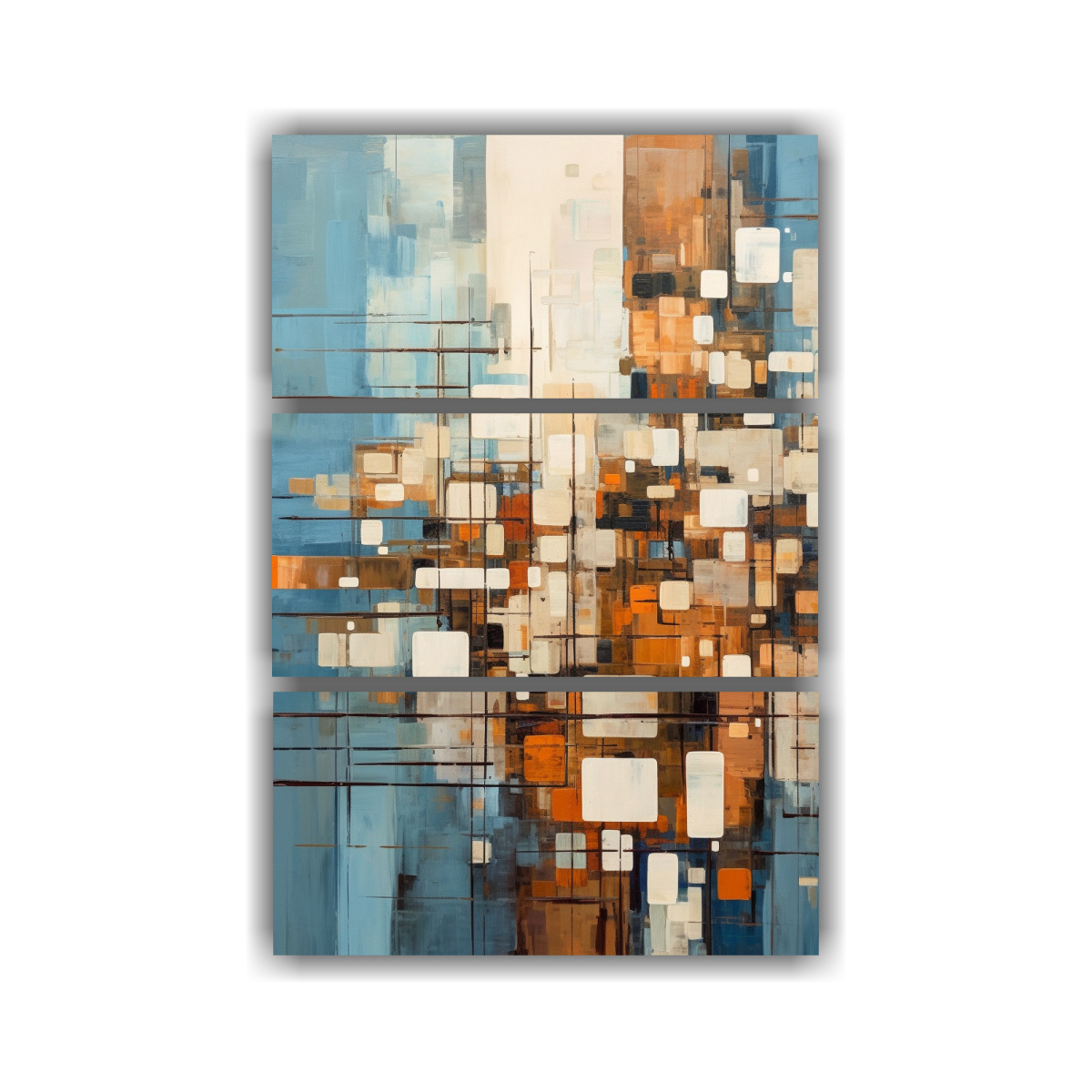 Tríptico Decorativo: Pintura Con Rectángulos Azules Y Blanco